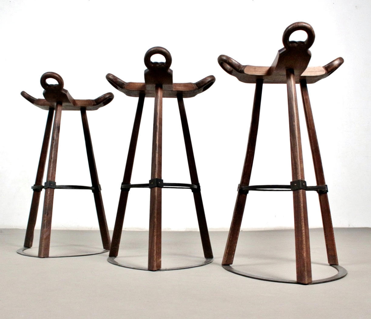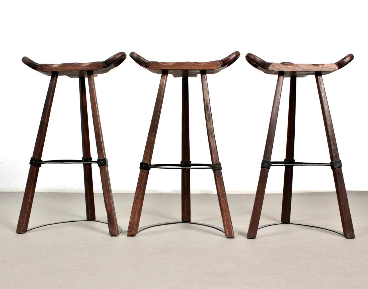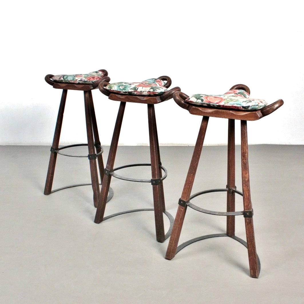 1741544. Set of three tripod BRUTALIST barstools model Marbella.