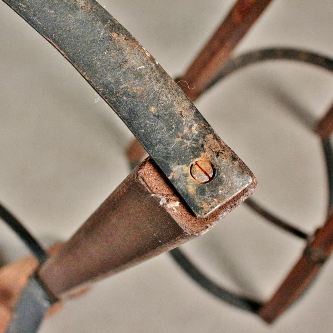 Slight traces of wear commensurate with age, probably later fitted with seat cushions, strip steel connections somewhat loosened and slightly rusty.