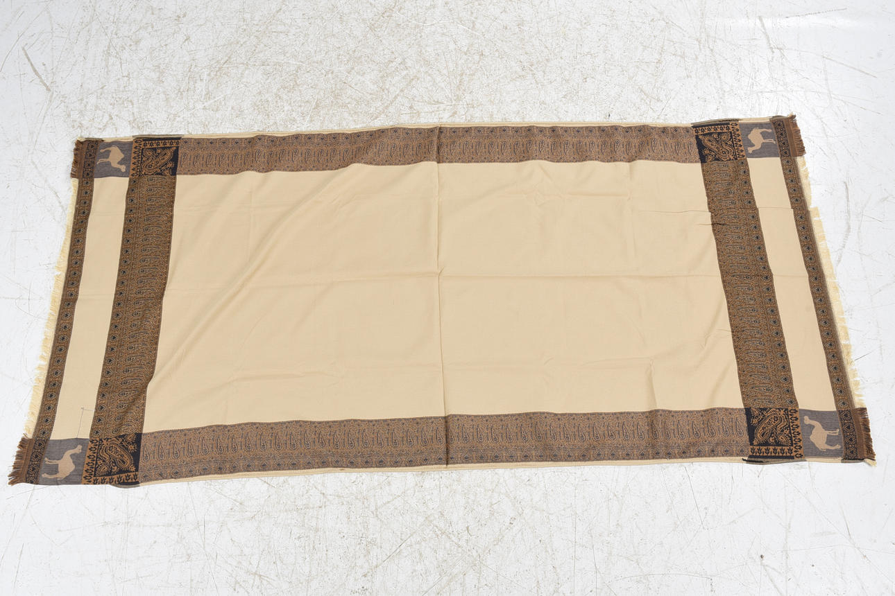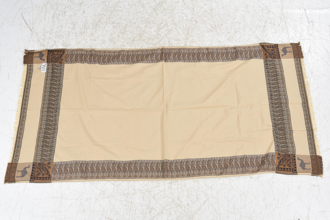 Jaquard woven shawls in camel and cotton, size approx. 200x95 cm / 220x95 cm.