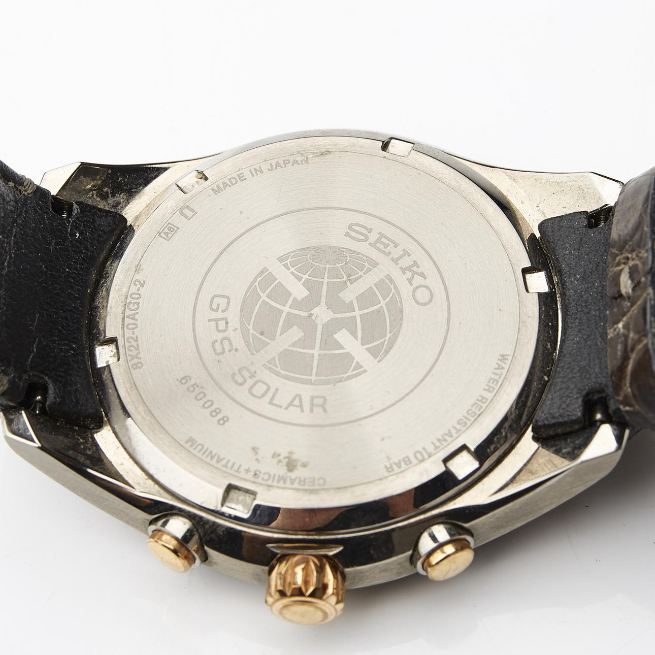 Quartz, GPS, solar, date, titanium, leather bracelet, case number 8X22-0AG0, original box included.