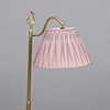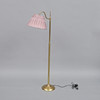 Floor lamp, frame in antique treated brass, slightly curved light arm, round bevelled base, lampshade Laura Ashley model Fenn Silk Pleatedsilk. Height approx. 150 cm.