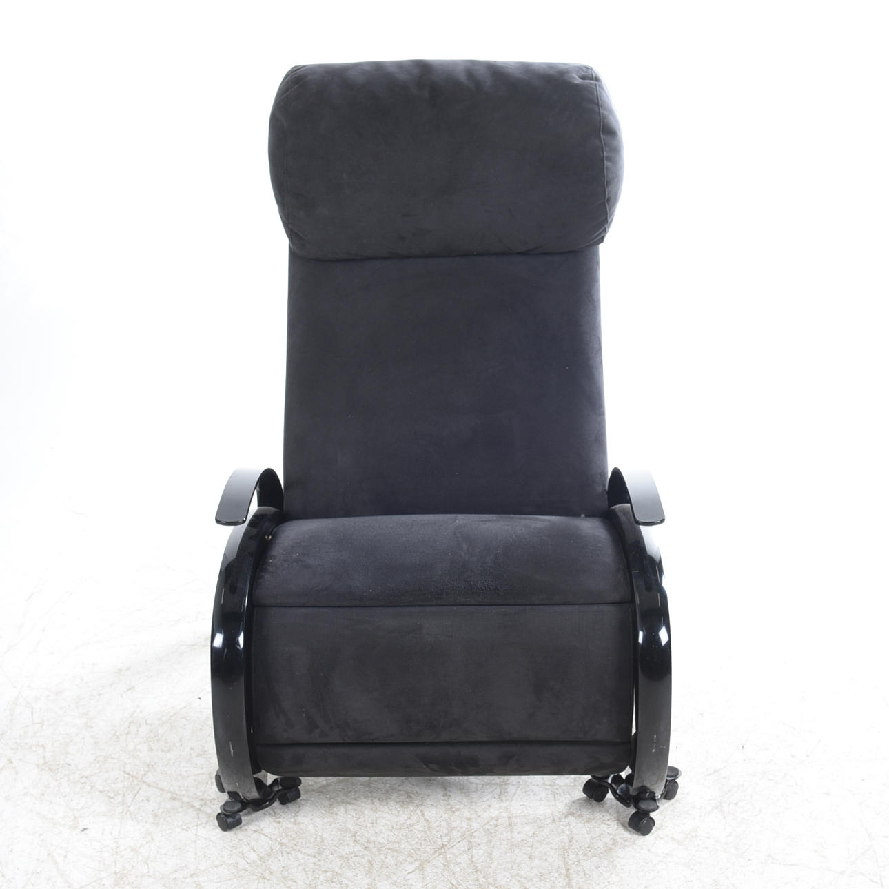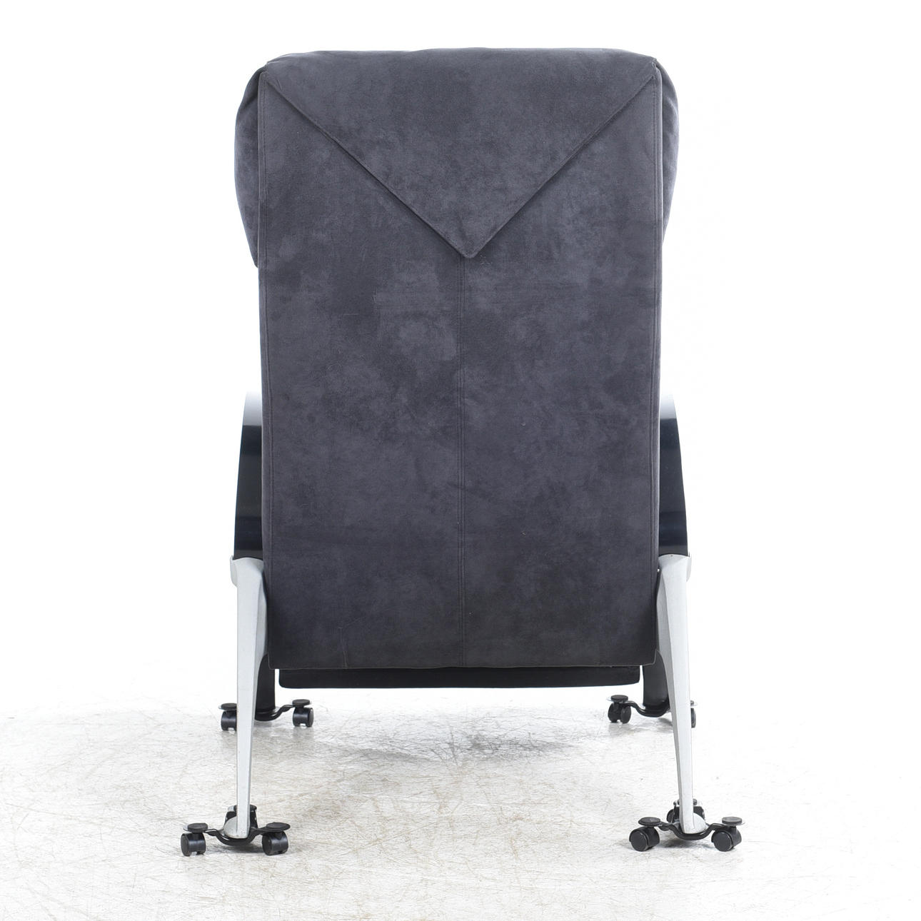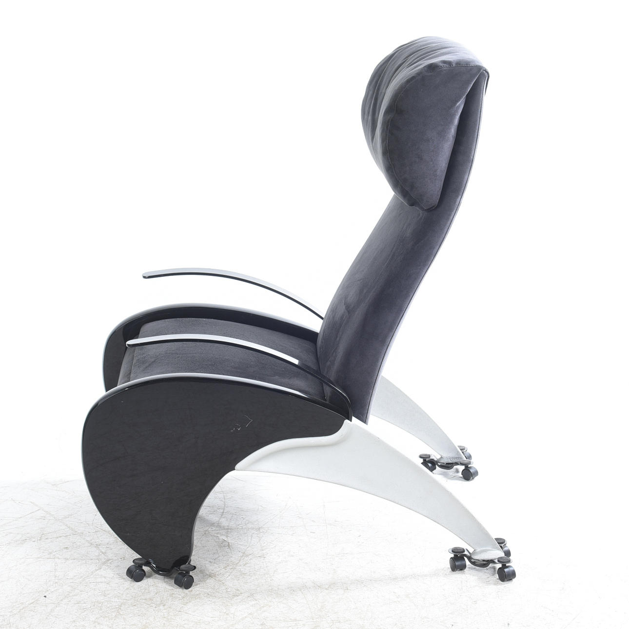Design Phoem Studio, model "Augusta", metal frame, covered in alcantara, adjustable back (recliner), approx. 1990s, H approx. 115 cm, Seat height approx. 45 cm, W approx. 71 cm, Depth approx. 100 cm.