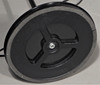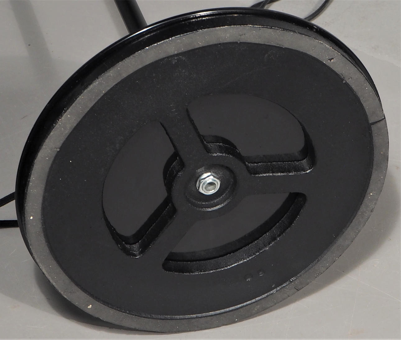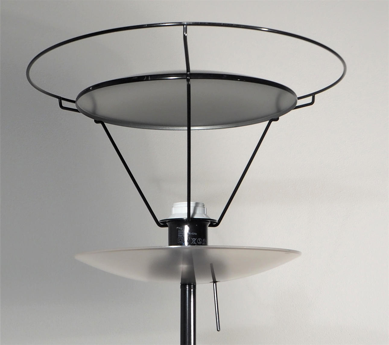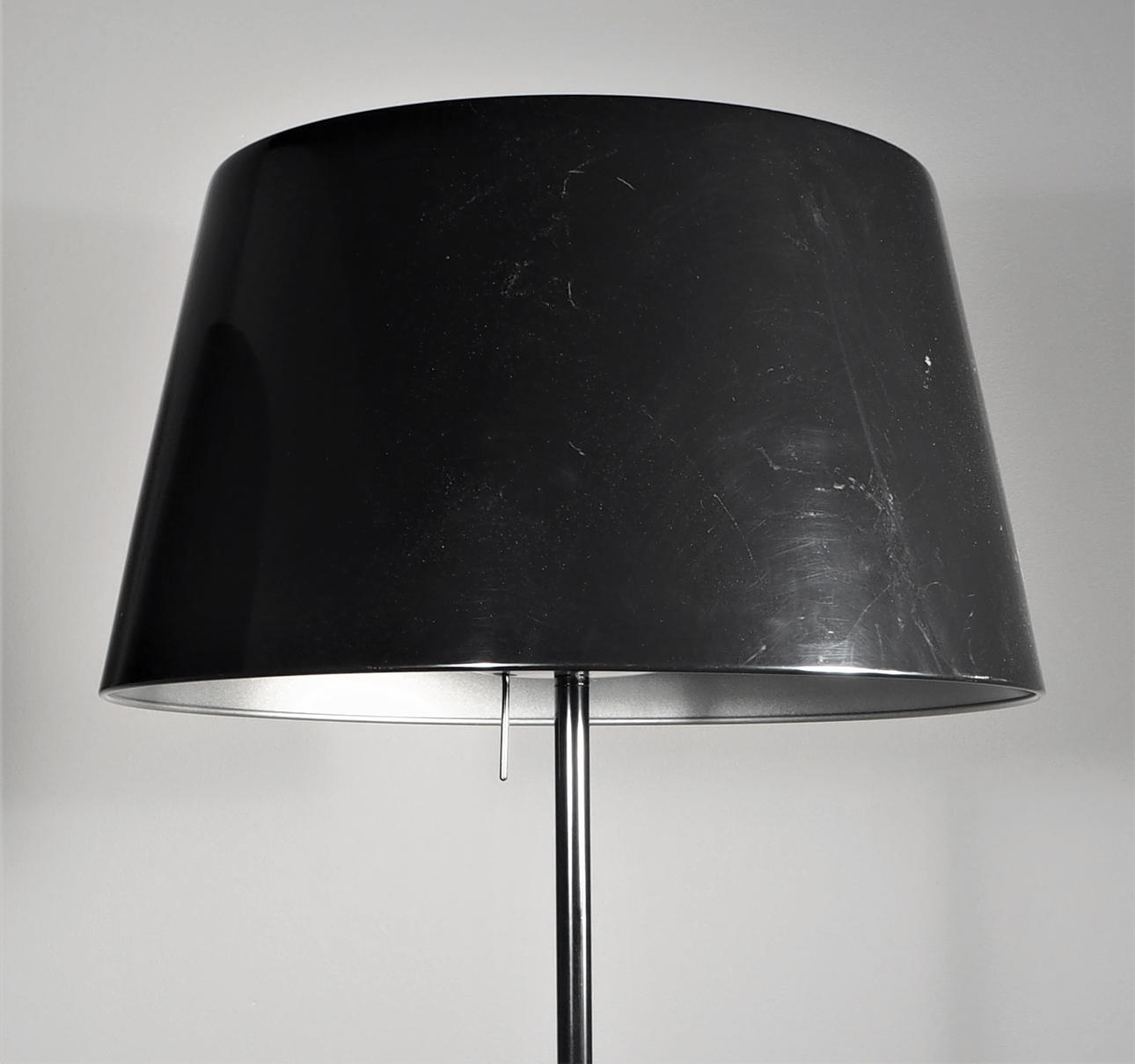 Screen and base in black lacquered sheet metal. Height 150 cm, lower diameter of the screen 50 cm.