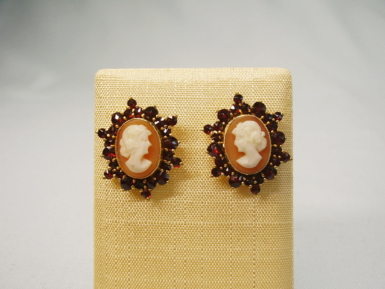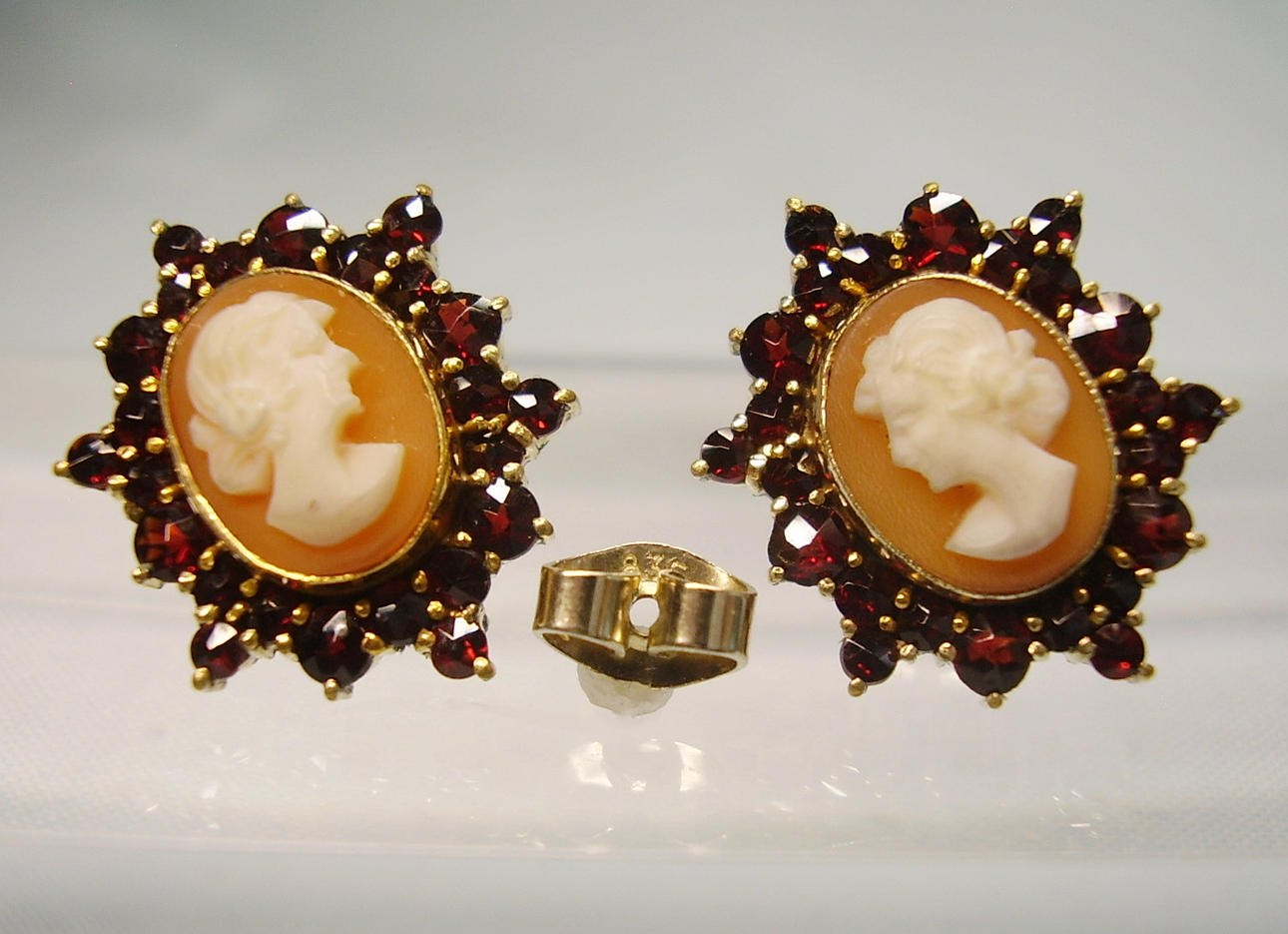 1752435. EARRINGS ANTIQUE SHELL & GARNET.