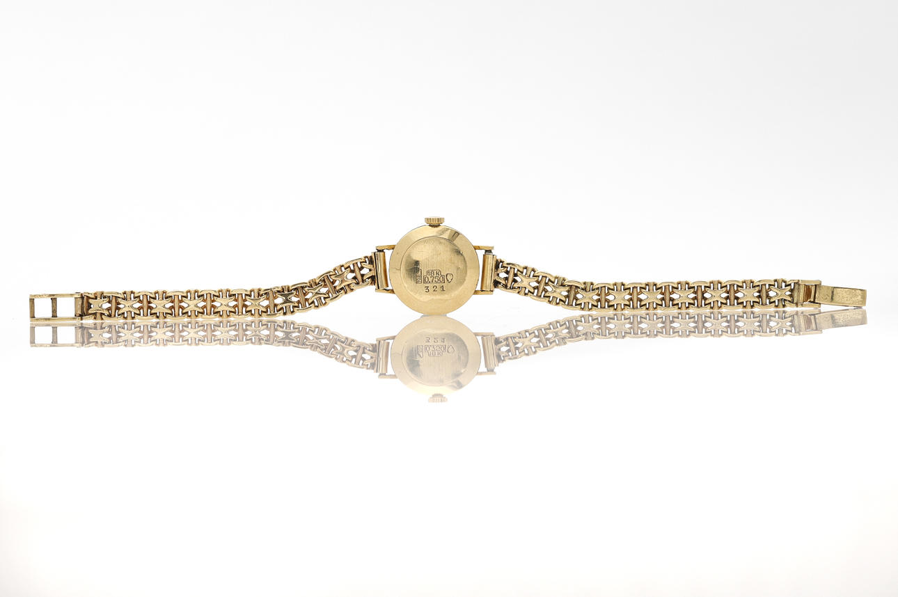 Convair, wristwatch, 18K, 1960s, manual movement, red gold, sapphire crystal, serial no. 321, later arm link model X-link with rod, folding lock, diam approx. 18 mm, weight approx. 23.1 g, original case included.