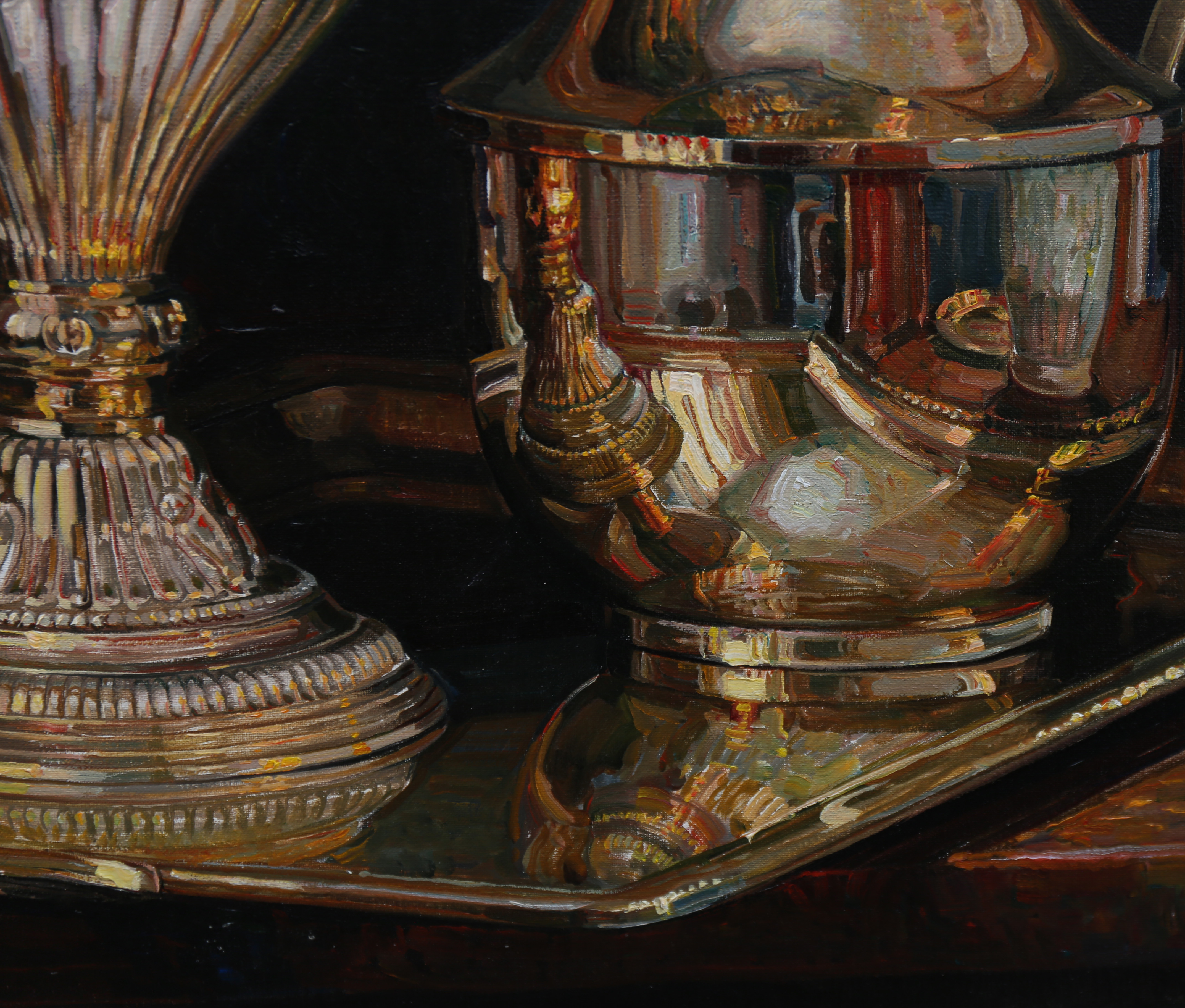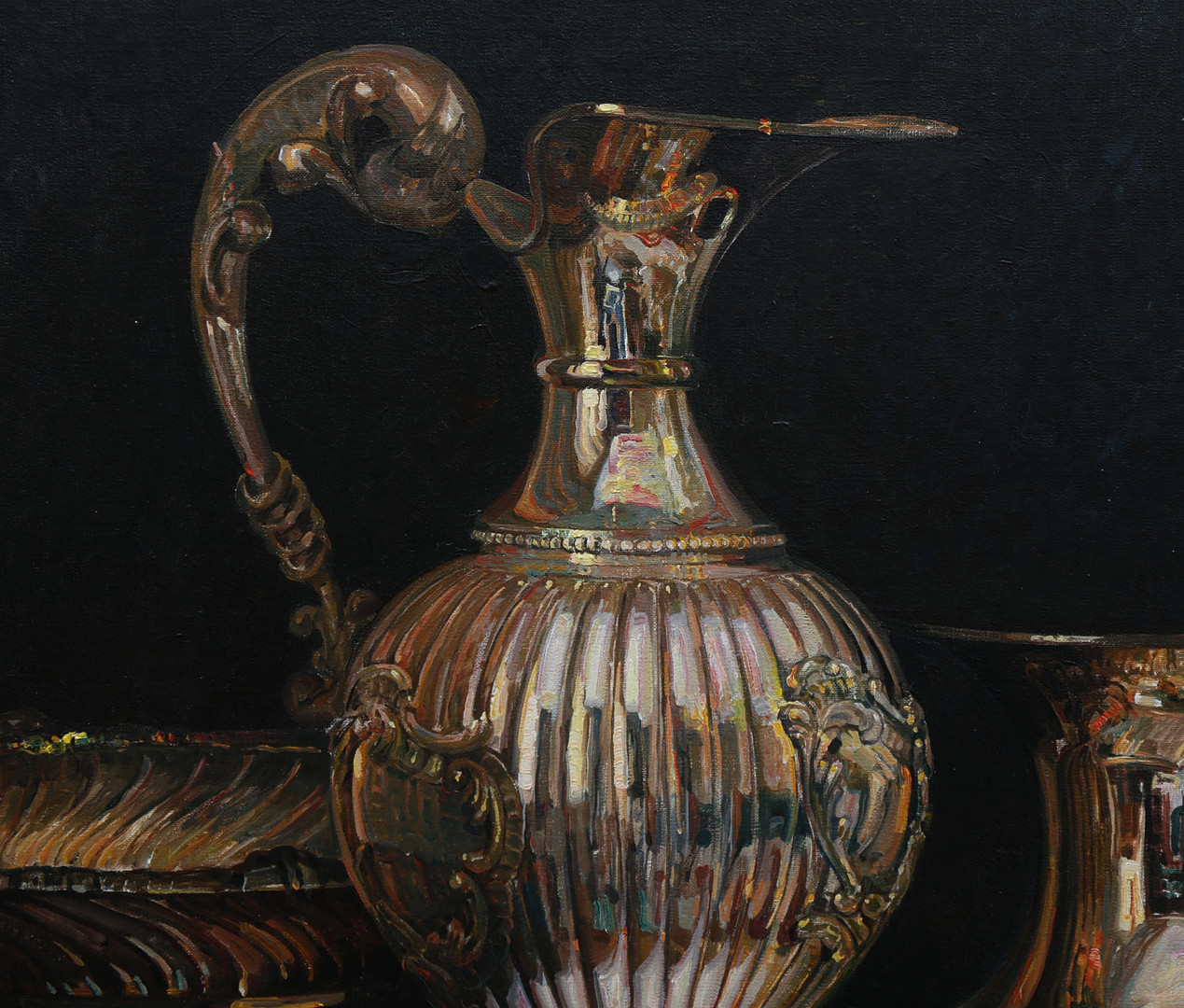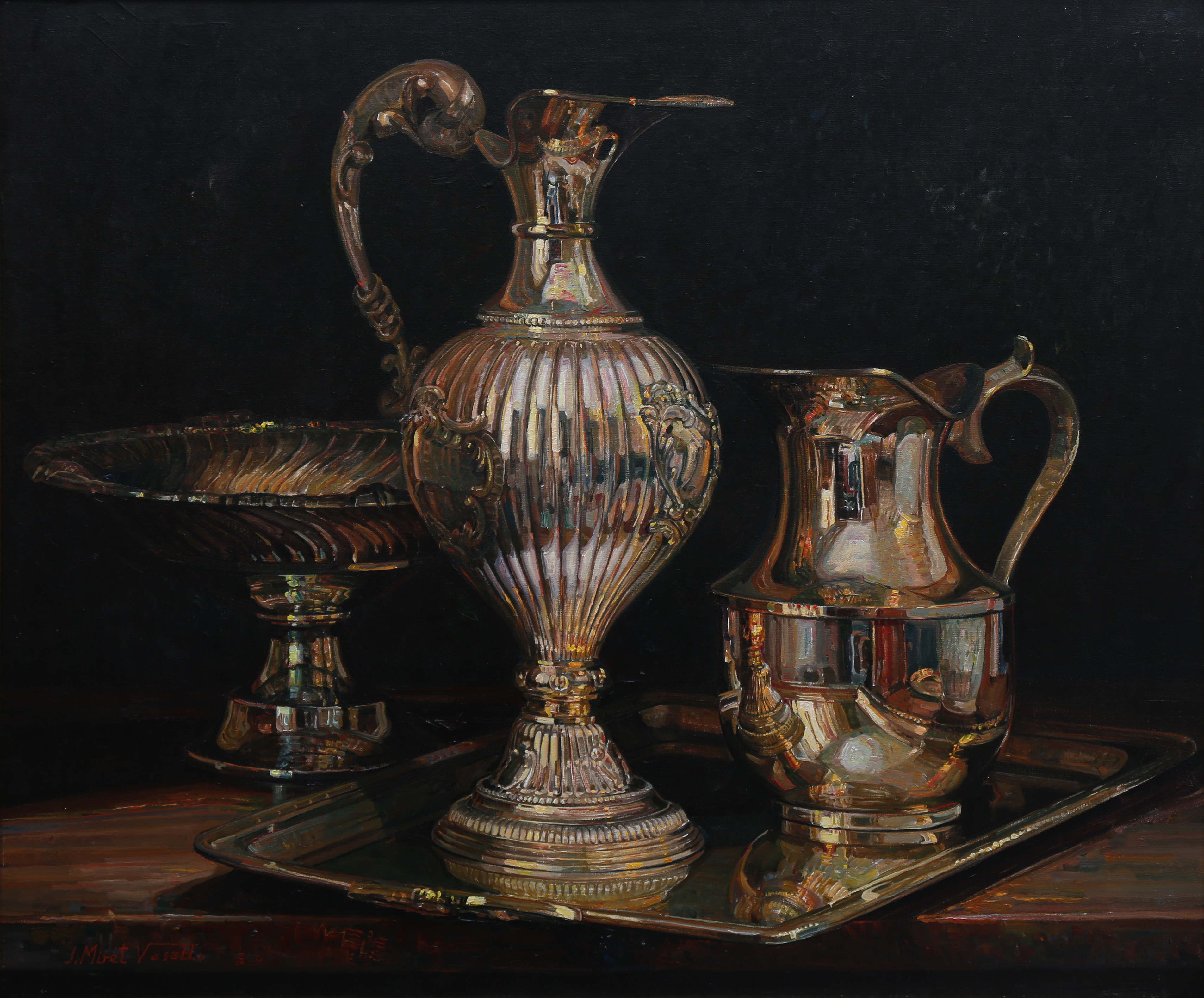 1752806. JOSEP MIRET VASALLO. Still life with silver objects.