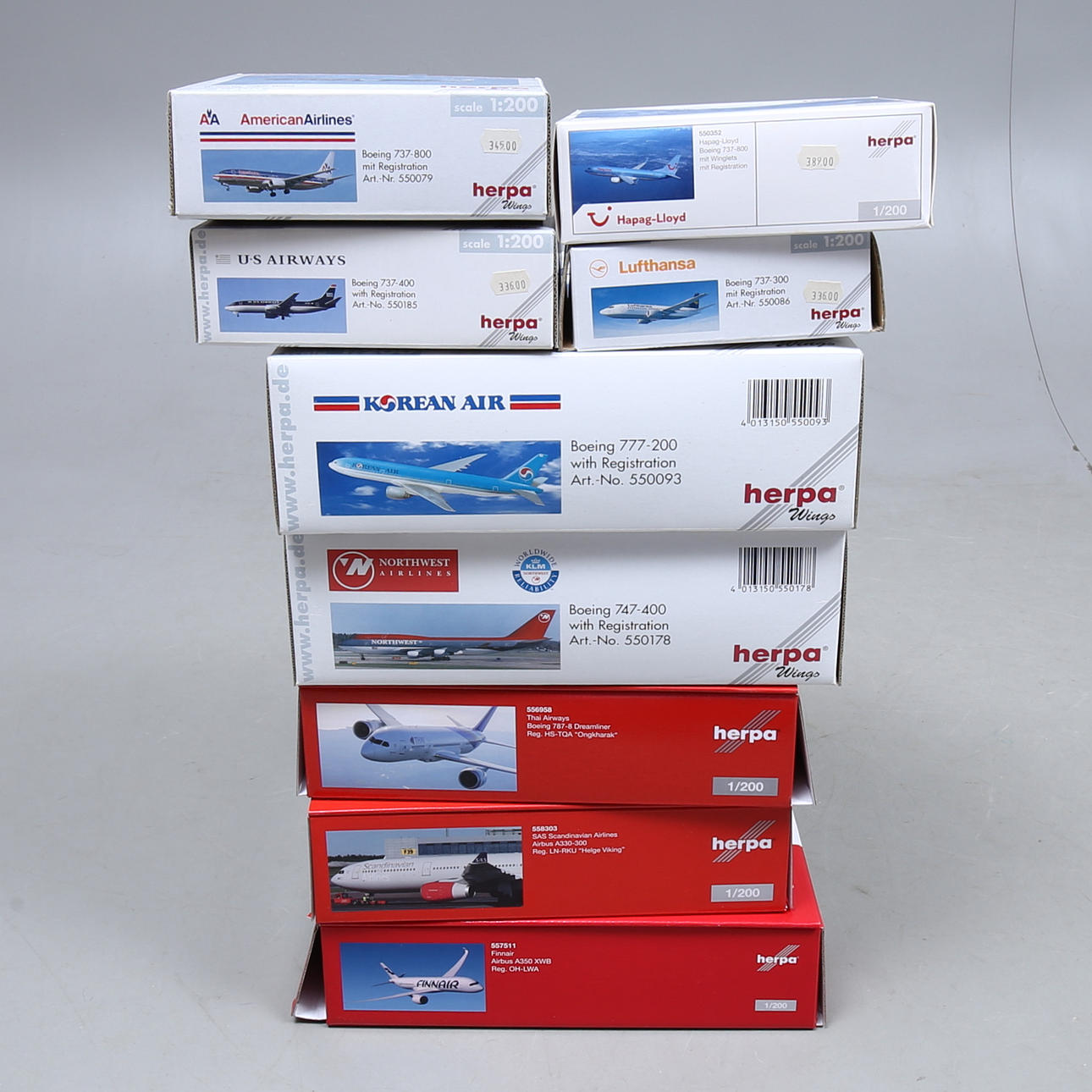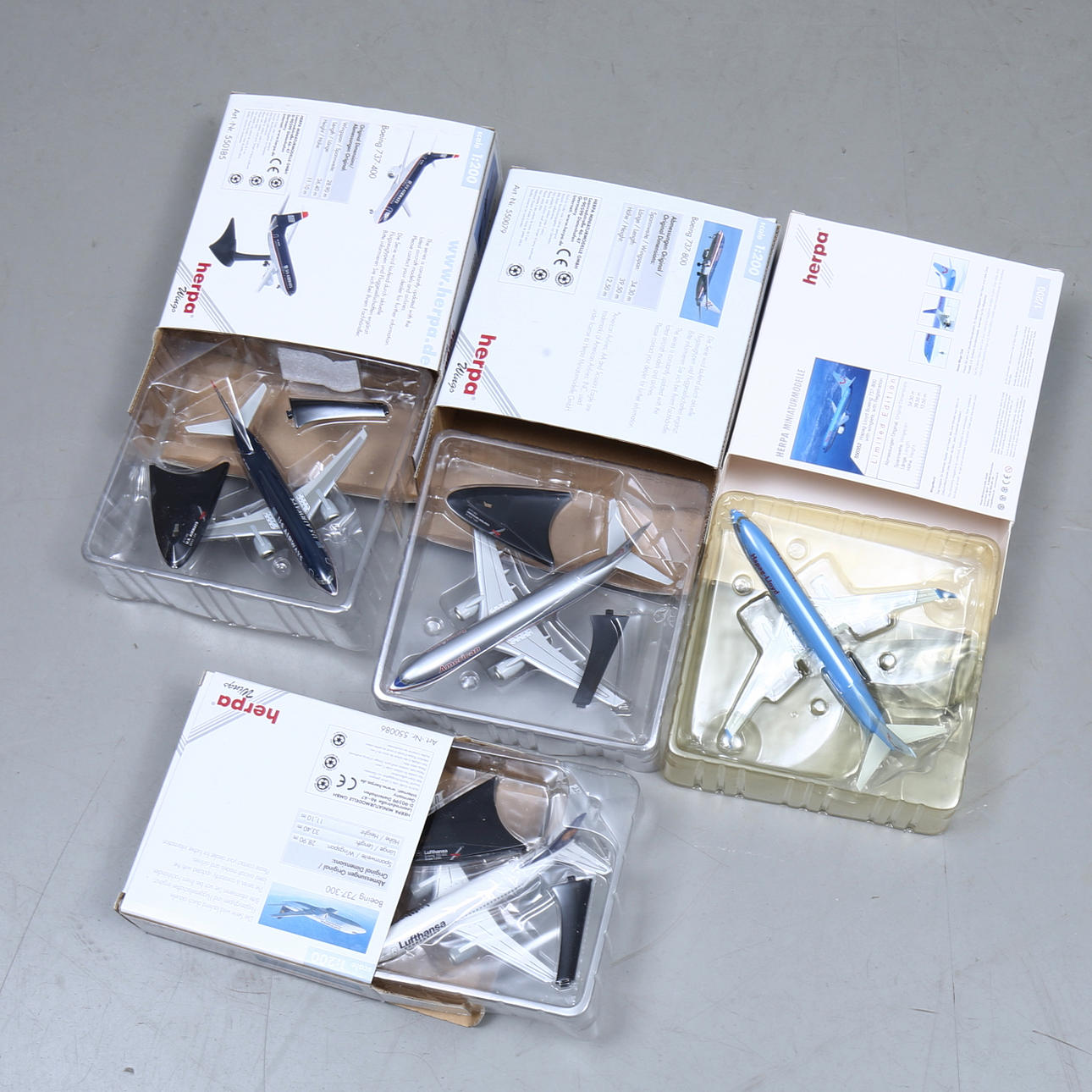 AIRPLANE MODELS, 9 pcs, Herpa, in original boxes.