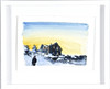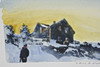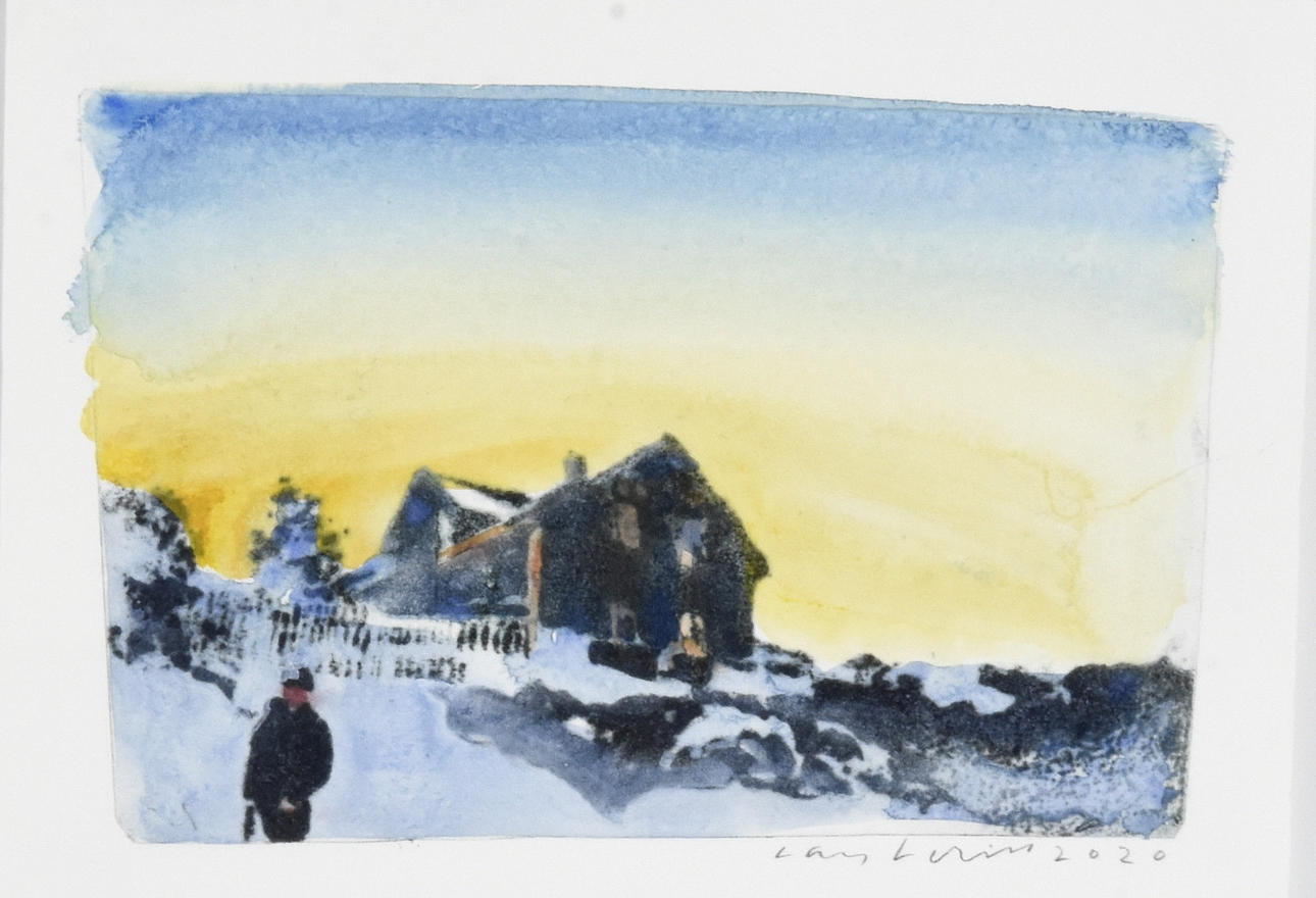 Winter landscape with standing man. Signed and dated 2020 18x25 cm.