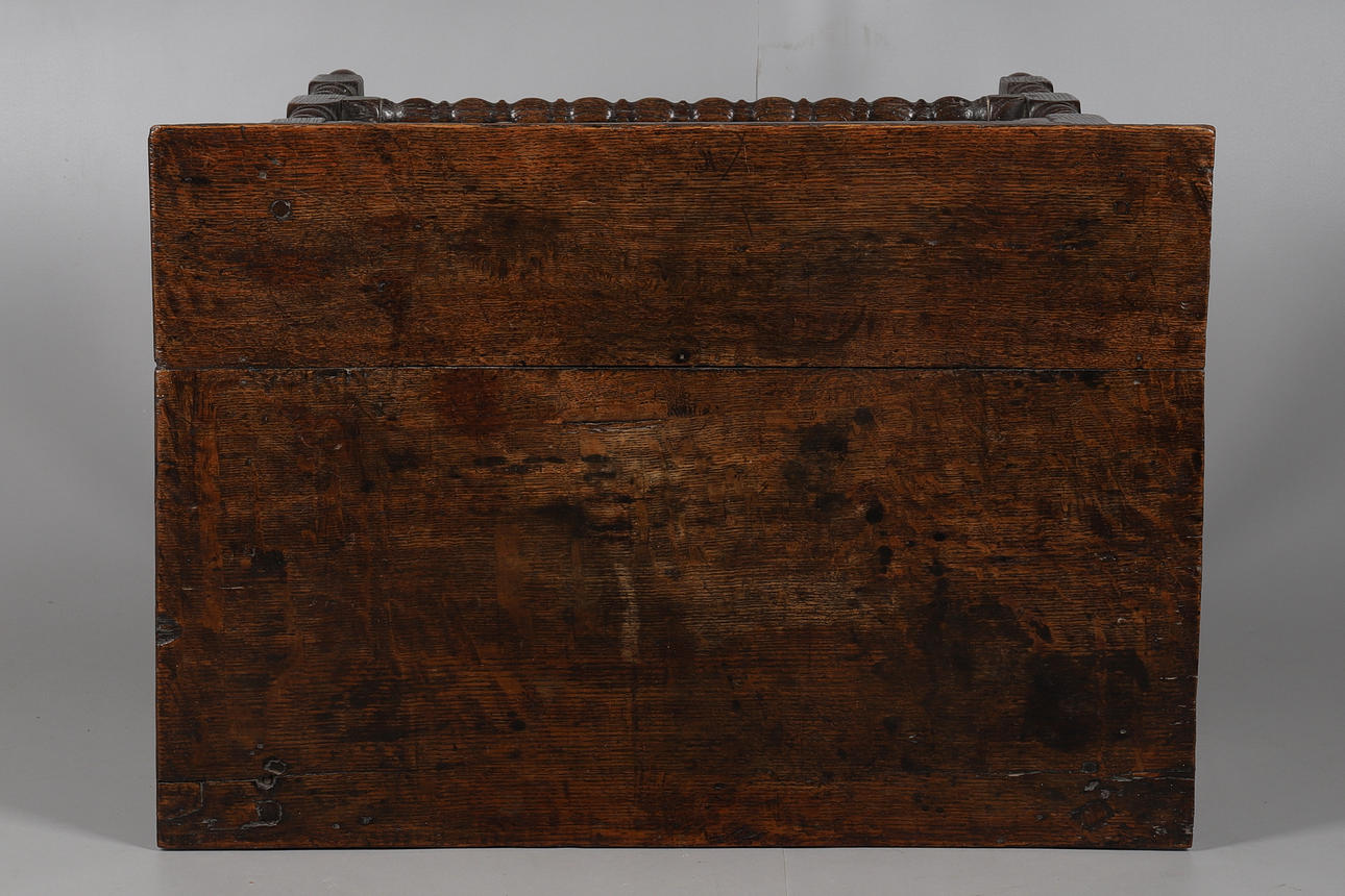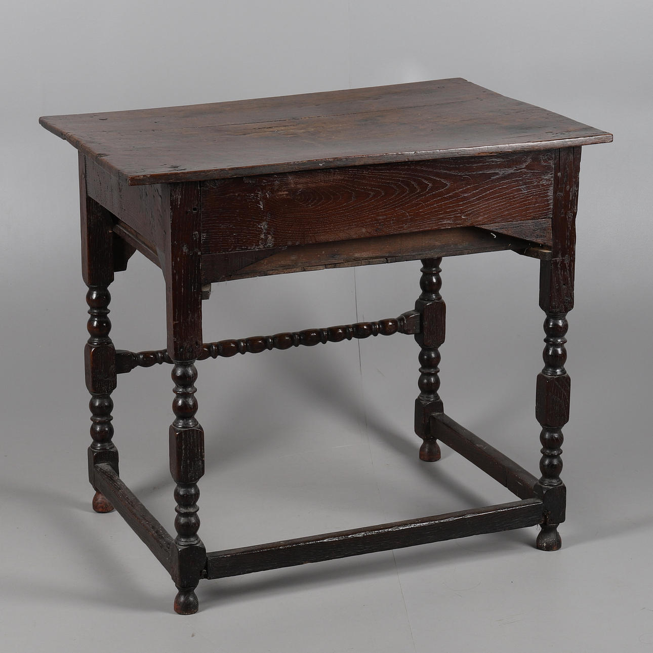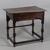 In the 17th century style, with elements of old wood, fitted a single frieze drawer and raised on turned supports.