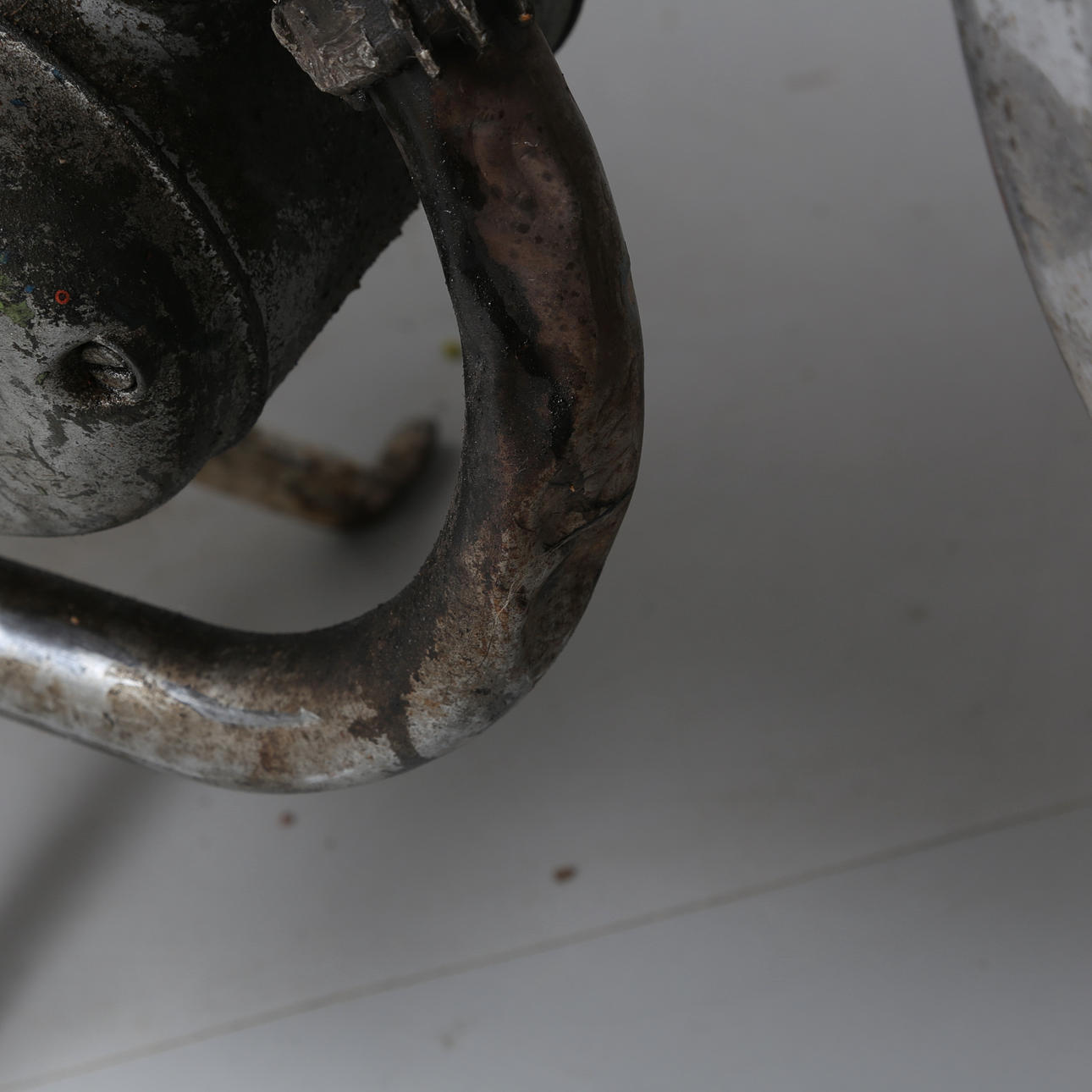 General wear and tear Bumps on exhaust system Return spring for kick start, defective Clutch, adjustable Front light working Rear light out of order.