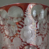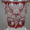 Colorless lead crystal, red overlaid, faceted, hand-cut floral decor, bottom with star-cut decor, manufacturer's label, H.ca.14.2cm.