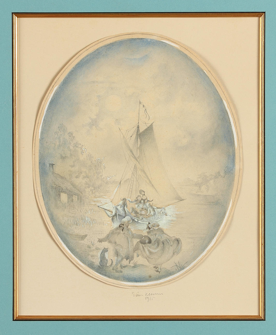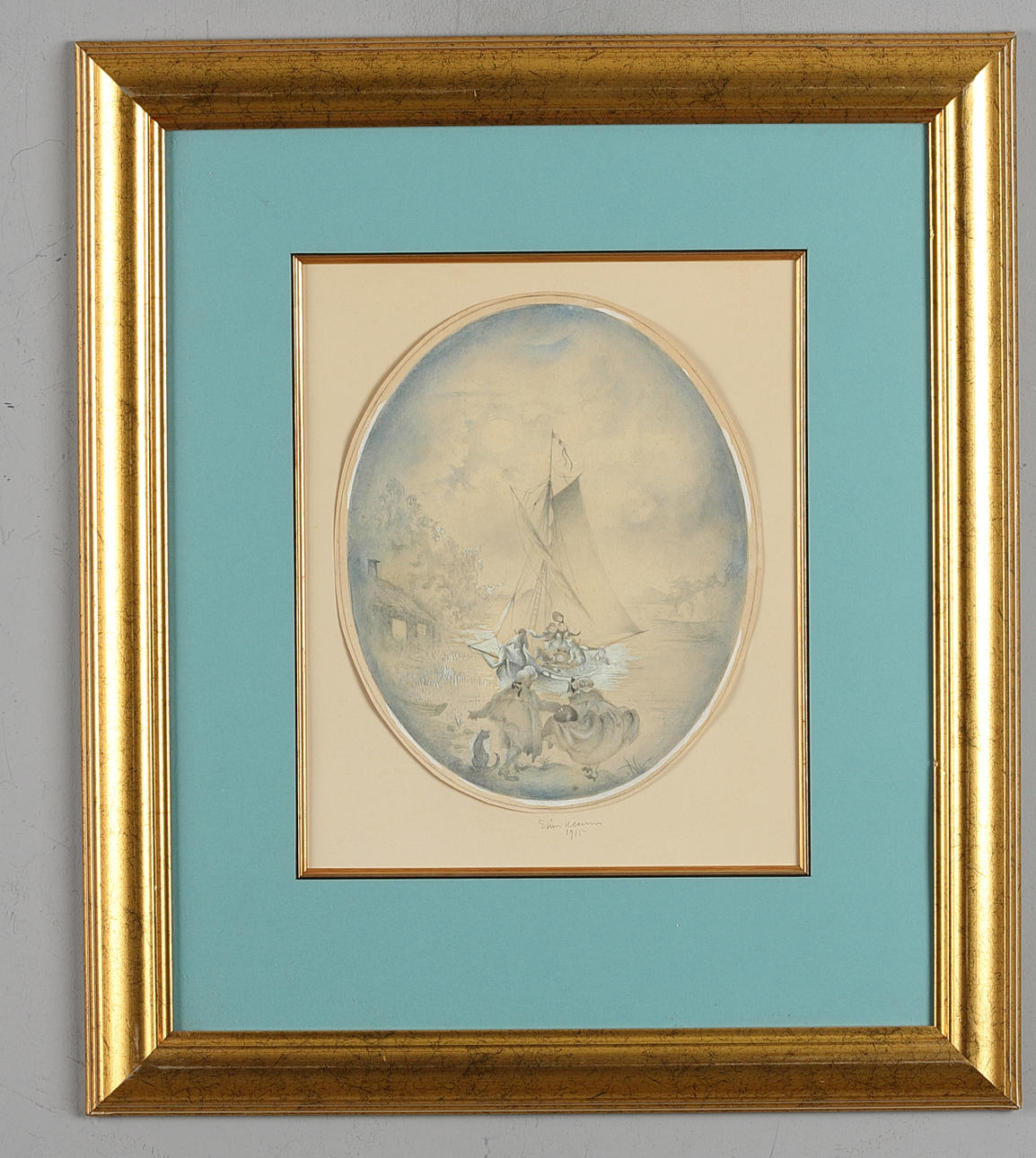 Signed and dated Einar Nerman 1911. Mixed media, image motif 25x20 cm.