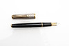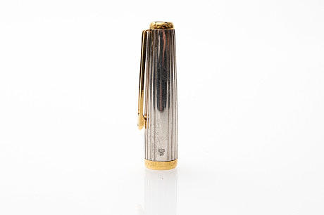 INOXCROM, Fountain Pen, black case, cap in stripe-patterned sterling silver, partly gold-plated, two-tone nib, size M, length approx. 145 mm, box included.