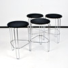 Set of four stools from the 1970s/80s. Design with chromed steel wire base, upholstered seat with dark gray plastic connectors and black fabric covers. dimensions approx. H. 64 cm, Ø 40 cm.