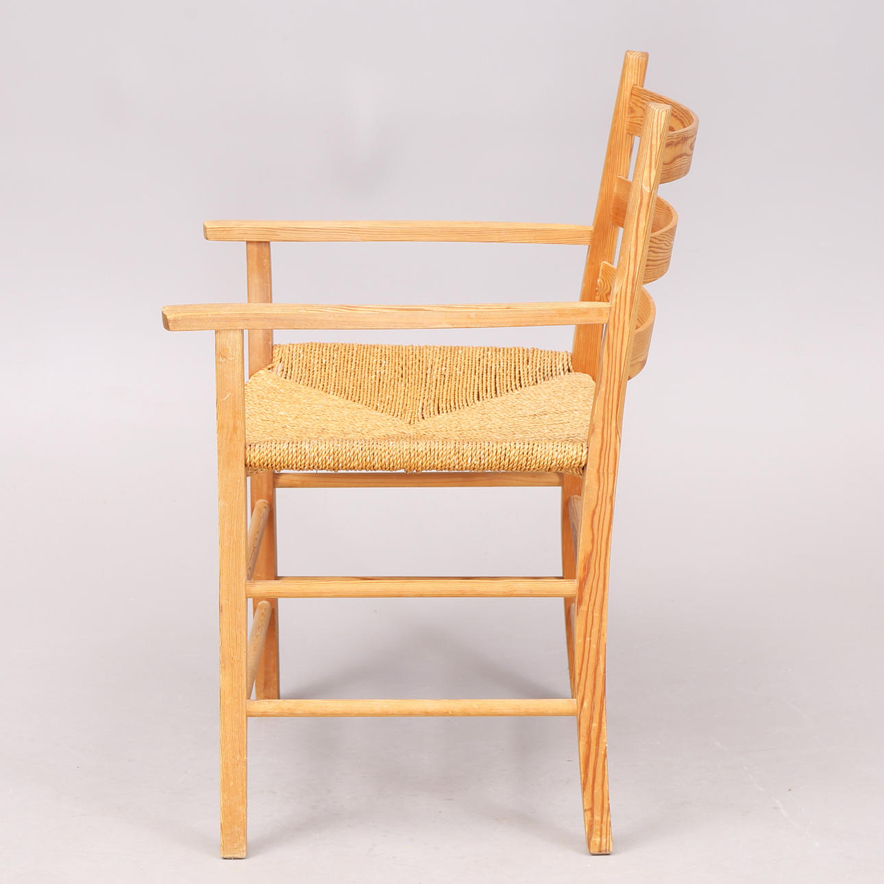 Normal wear and tear, scratches, damage to one armrest.