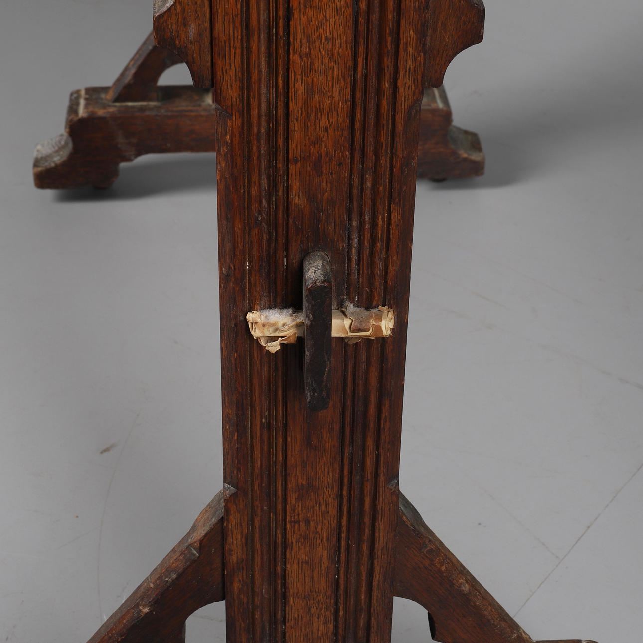 Top with split, marks and knocks, slightly unstable, one stretcher retaining block missing.
