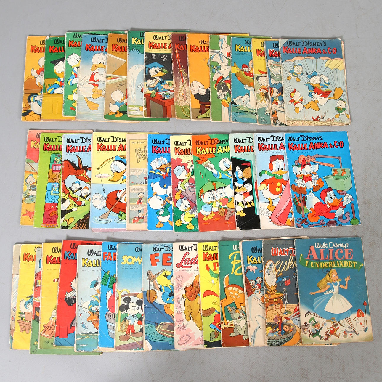 Donald Duck: 1950 no. 2, 6, 10, 11 1951 no. 2, 9, 11, 12 1952 no. 2, 2B, 3, 6, 7, 8, 11, 12 1953 no. 1, 2, 3, 4, 6, 7, 9, 11 1956: no. 8, 13 1957 no. 3, 4, 5, 8, 16, 18, 21, 23 As well as 8 mixed Walt Disney series from the 1950s.