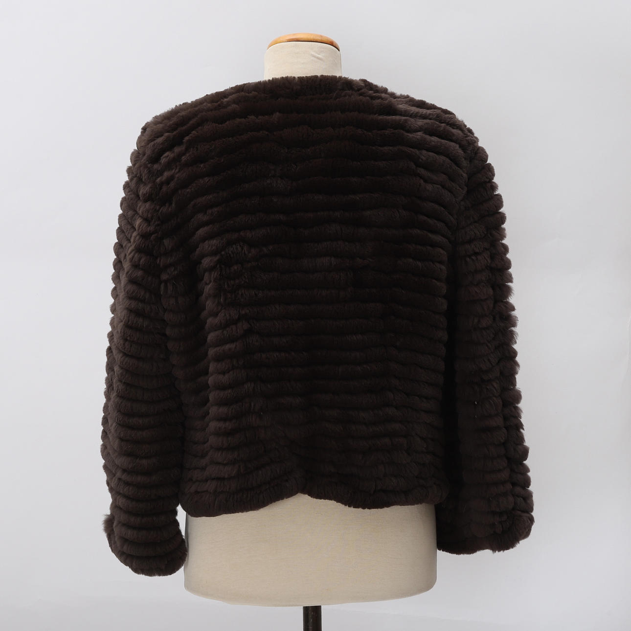 Levinsky Copenhagen, jacket, size 38, brown fur in layers, probably chinchilla, slightly trumpet-shaped sleeves, buttoned with small pockets, lined, labeled, length approx. 58 cm.