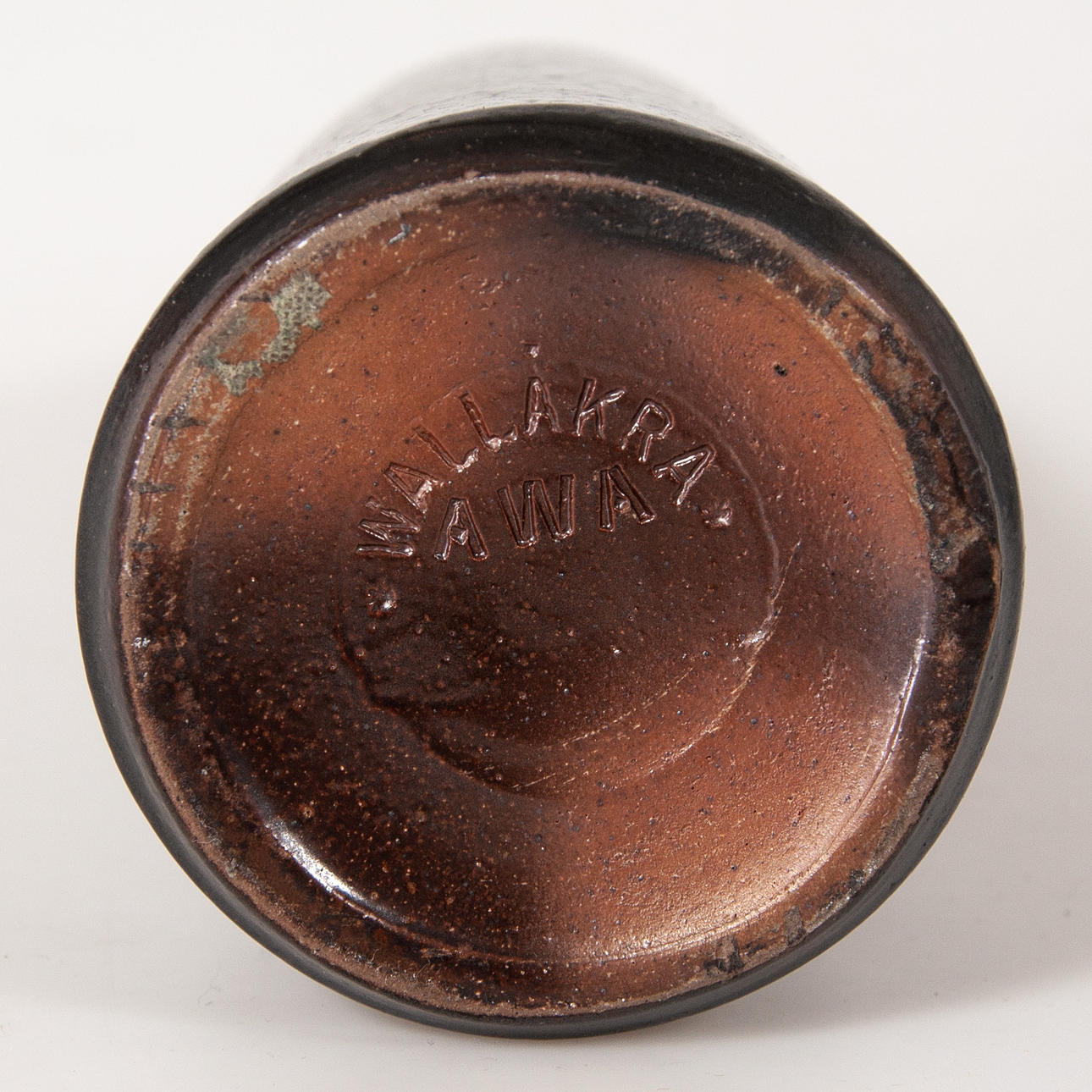 Glaze in shades of brown, green and black. Underneath carved signature WALLÅKRA AWA.