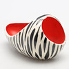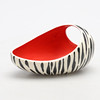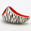 1950’s,after a design by Albert Hallam and Jim Hayward, the ovoid shape with integral handle, the exterior with Zebra stripes, the interior in matt red, impressed, moulded and printed marks to base, 22cm long, 12cm high.