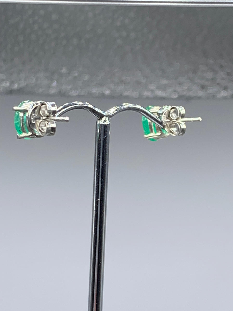 Each emerald is set in 4 claws. These studs come with butterfly backs.