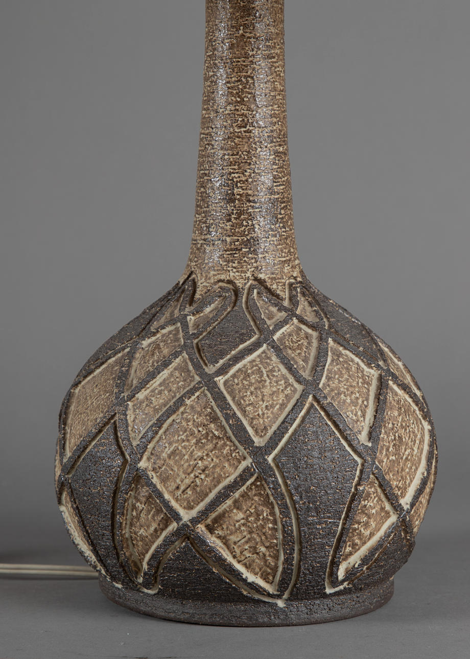 1960s-1970s. ceramic foot, incl. 'Made in Denmark'. Beige lampshade with wool fabric. H. 62cm, Ø 35cm.