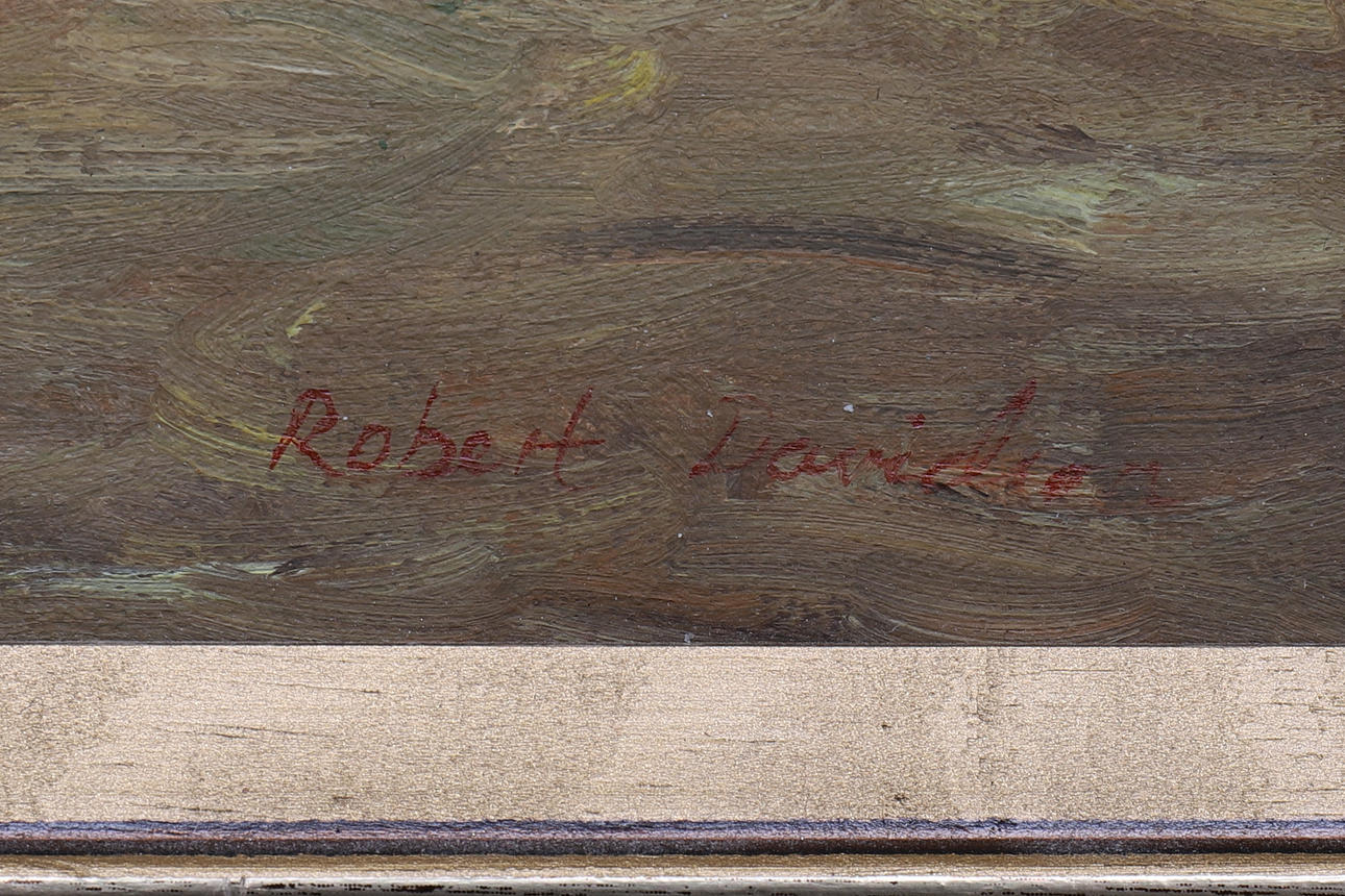 1805335. ROBERT DAVIDSSON. oil on canvas, chicken coop, signed.