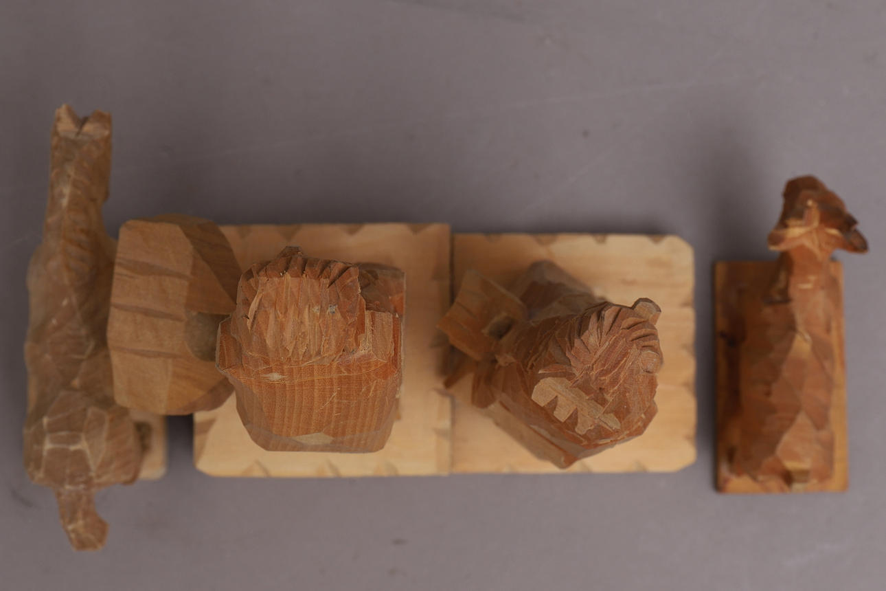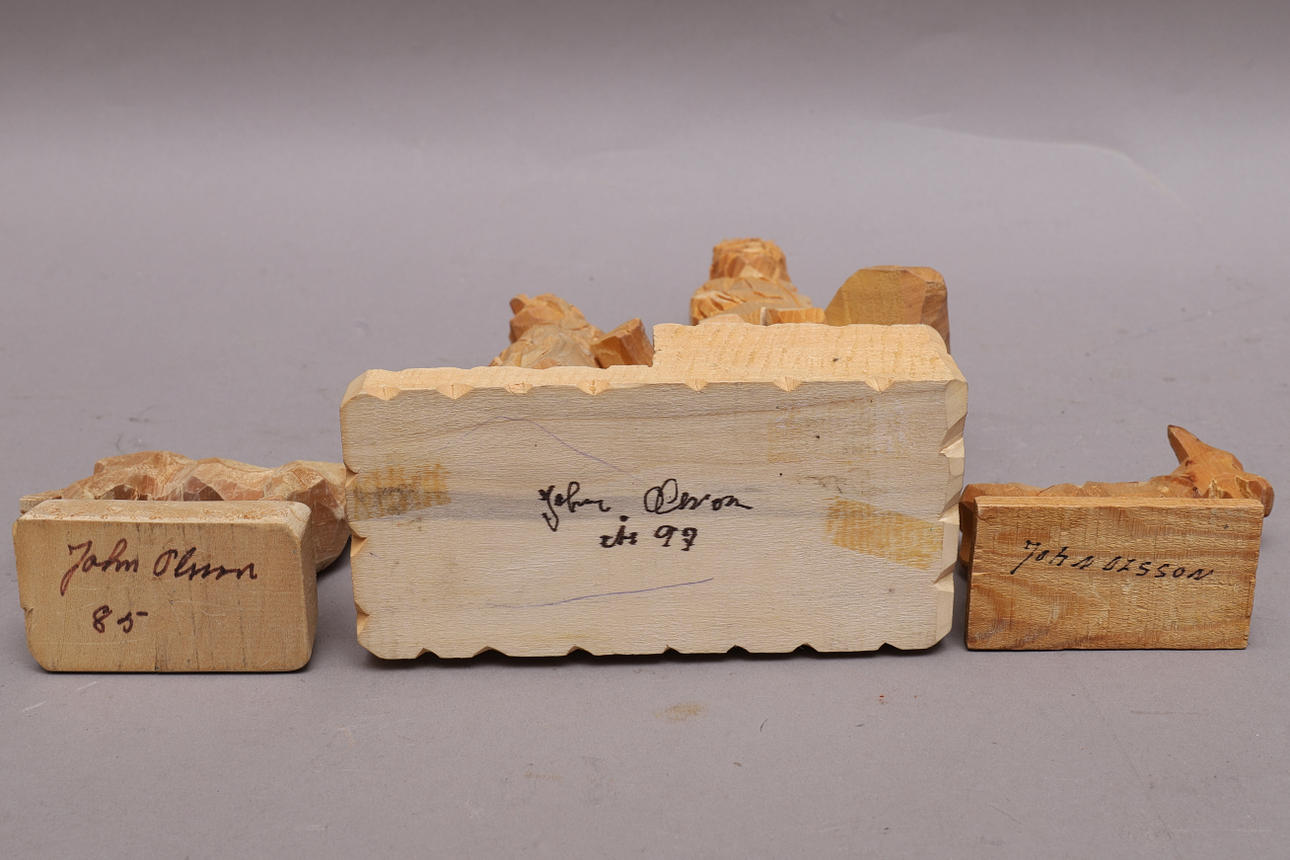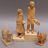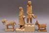 Old lady and old man, approx. 23 cm high, dated -97. Horse, approx. 10 cm high, dated -85. Goat, approx. 8.5 cm high.