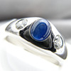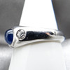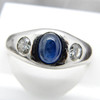 An oval cabochon blue sapphire gemstone is set in the centre of this gypsy ring.