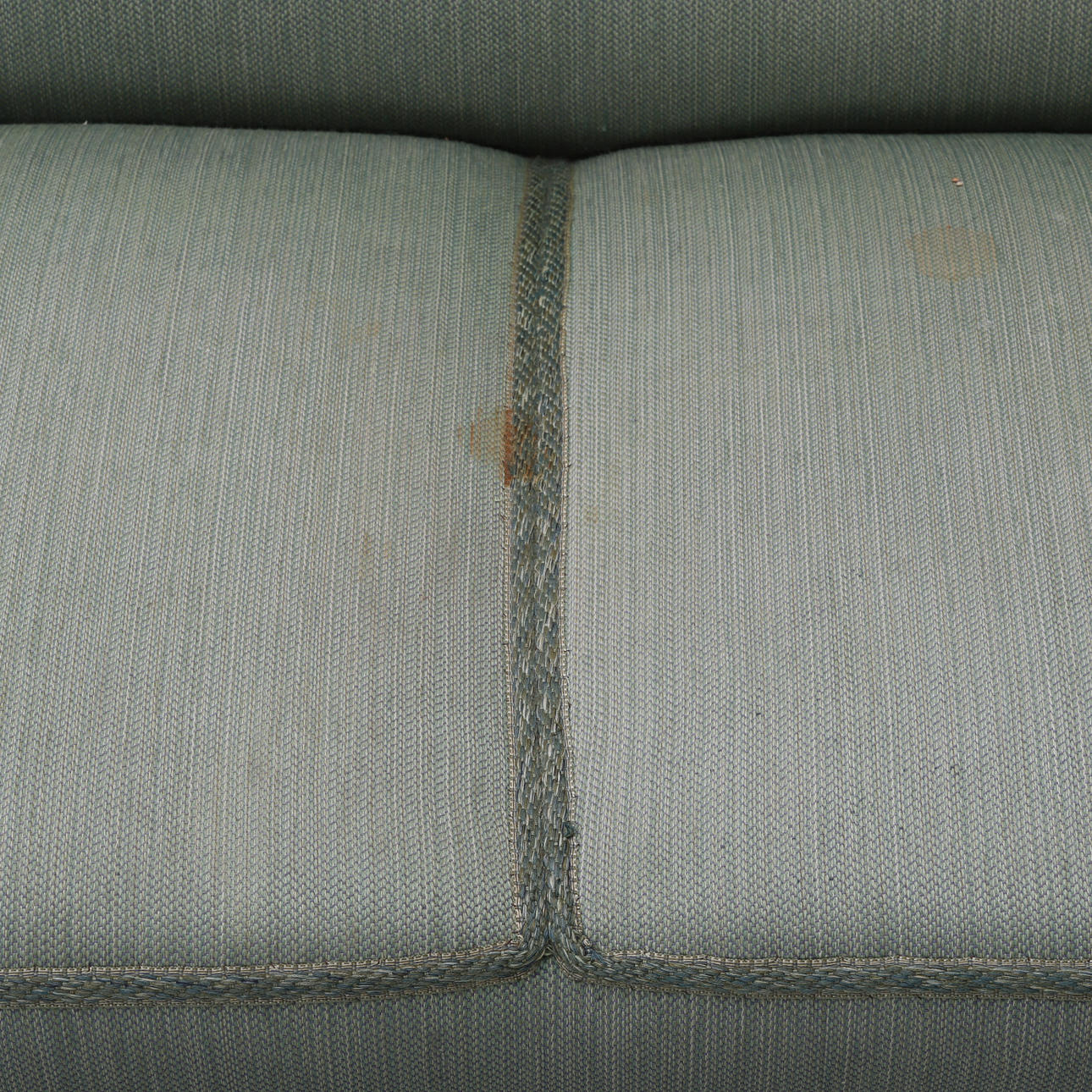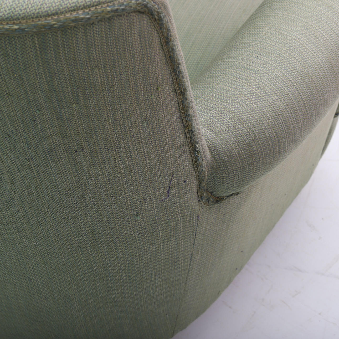 Green wool upholstery, buttoned back, seat height approx. 42, length 200 cm.