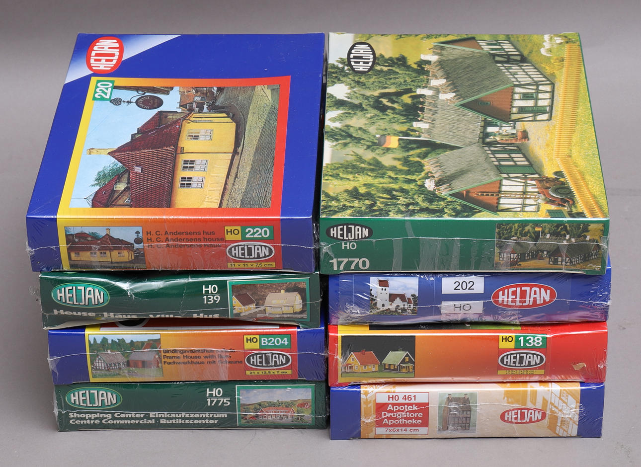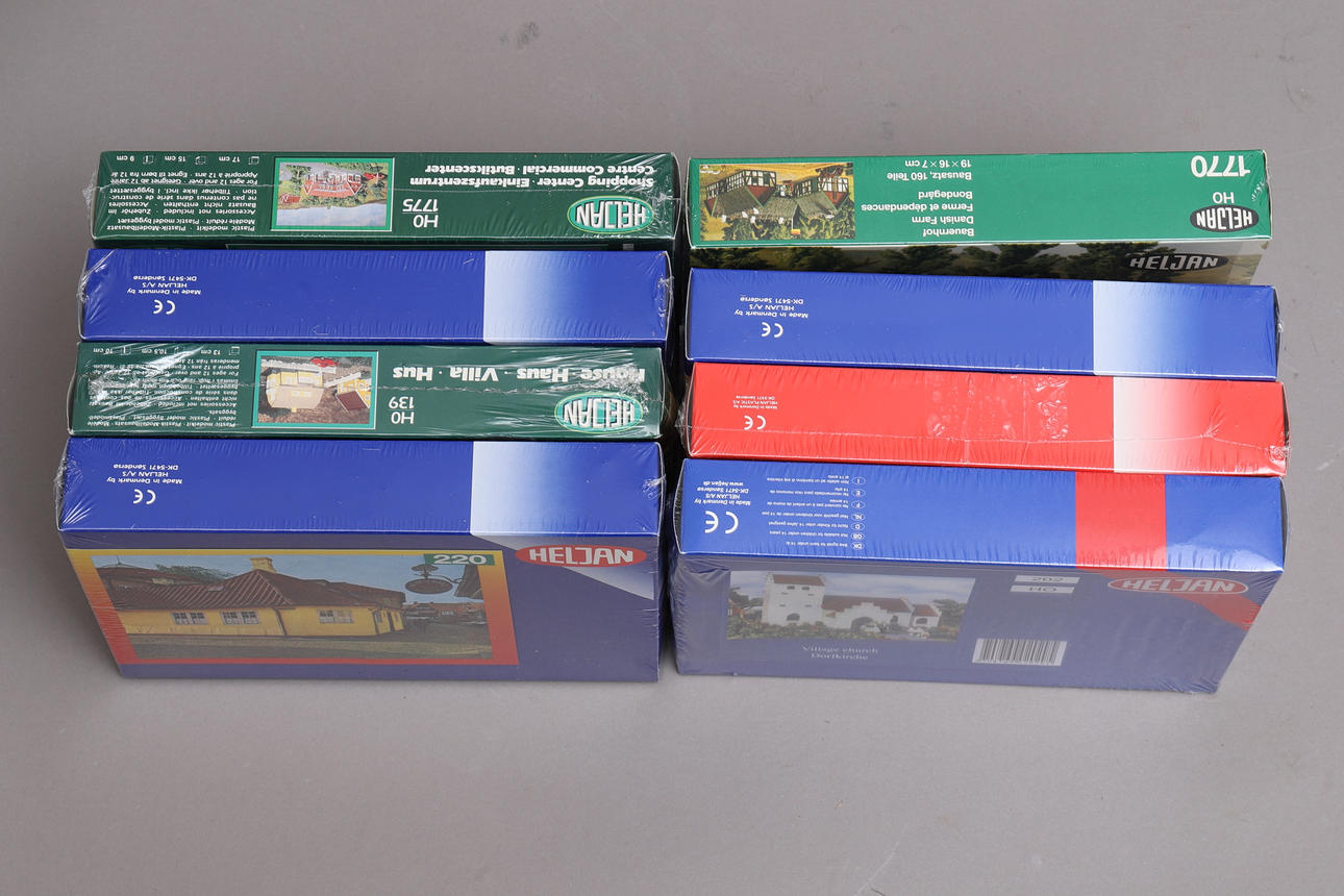 1811258. MODEL TRAIN BUILDINGS, 8 units, HO scale, Heljan.