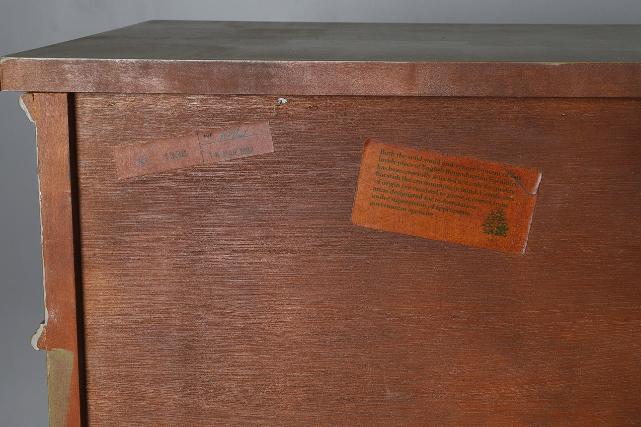 Fittted four frieze drawers and four doors enclosing adjustable shelves,