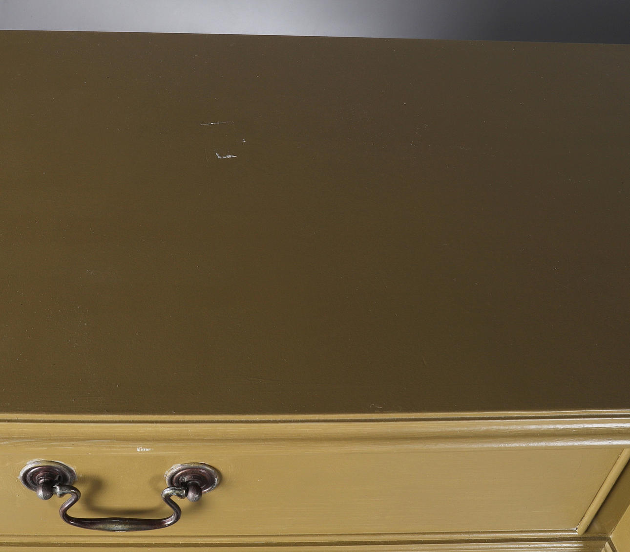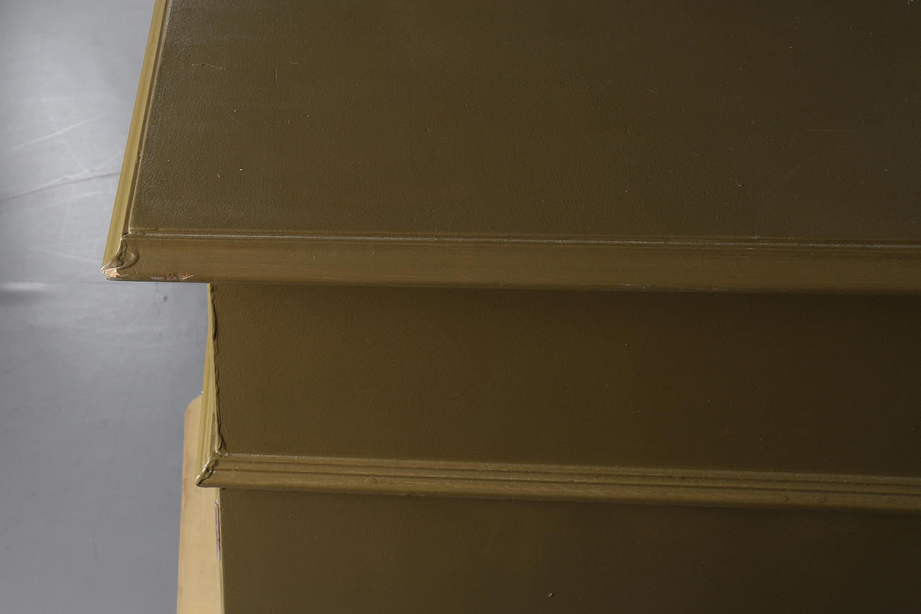 1817753. A MODERN OLIVE GREEN PAINTED BREAKFRONT SIDEBOARD.