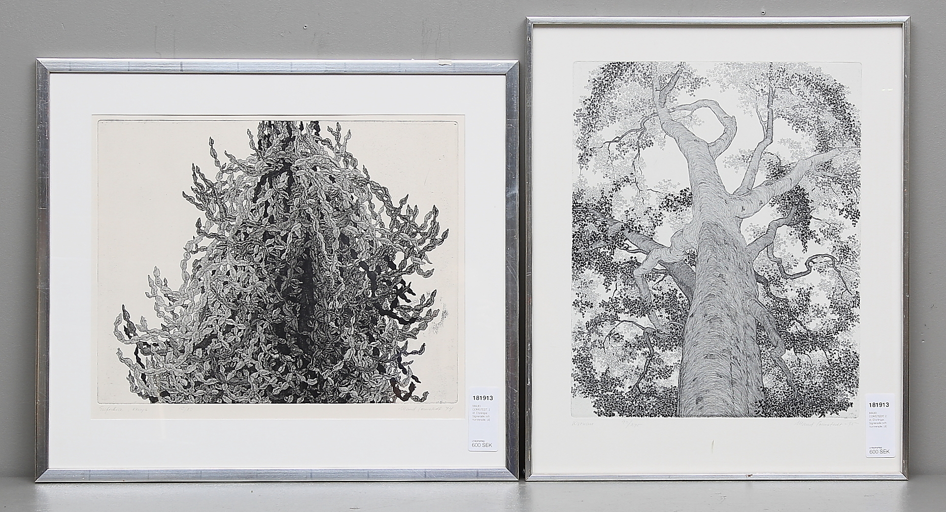 181913. MAUD COMSTEDT. 2 pcs. Etchings. Signed and numbered.