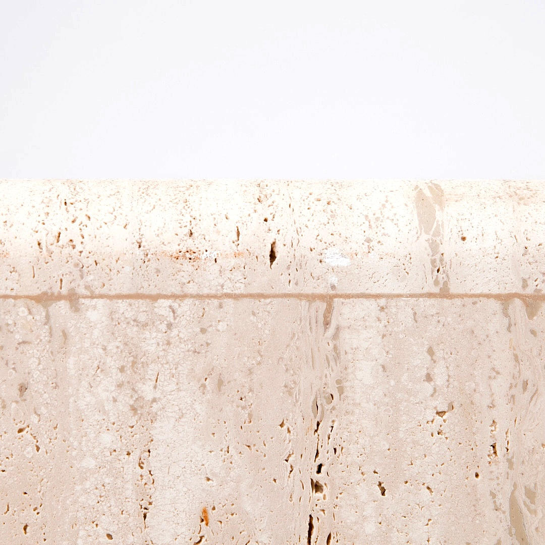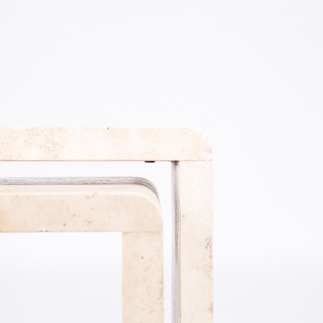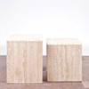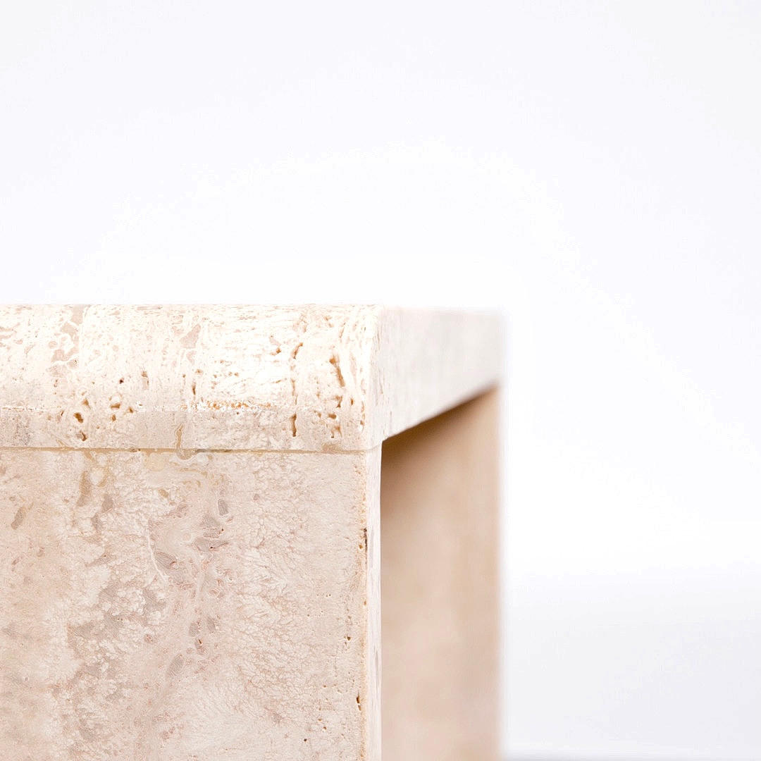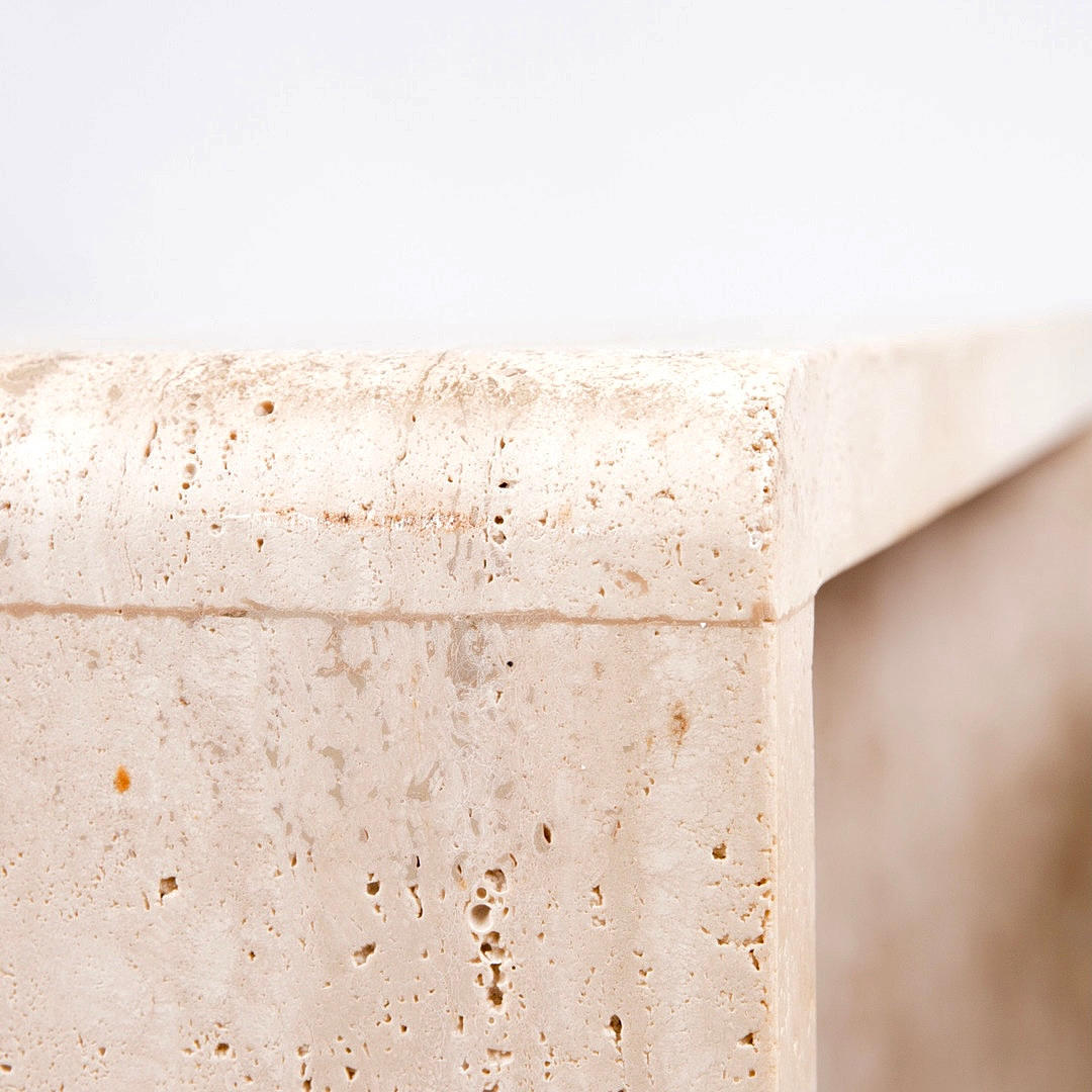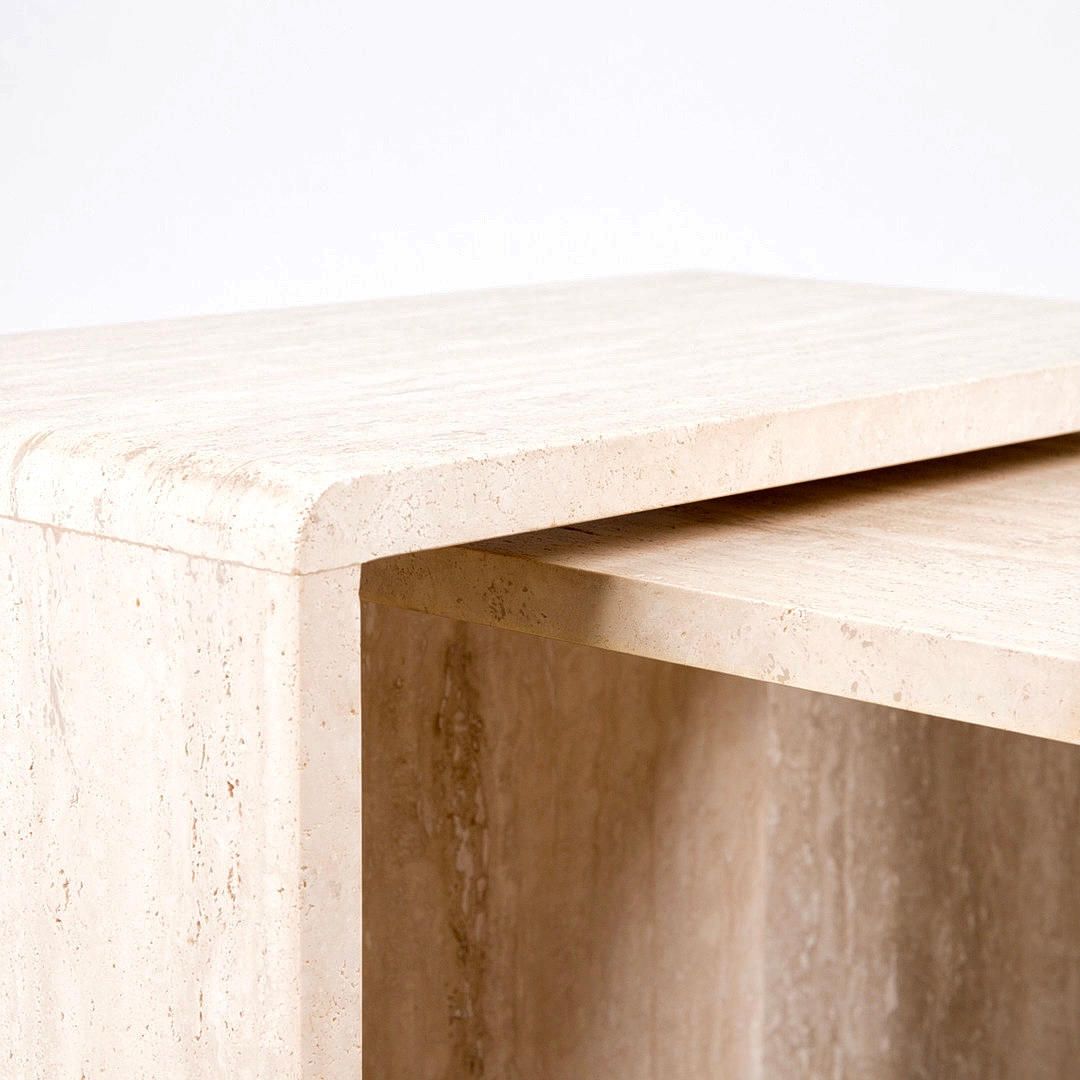 Two side tables, travertine, Italy, 1970s. Pair of travertine side tables in two sizes, H.45-50cm, L.61-70cm, W.40cm. (2).