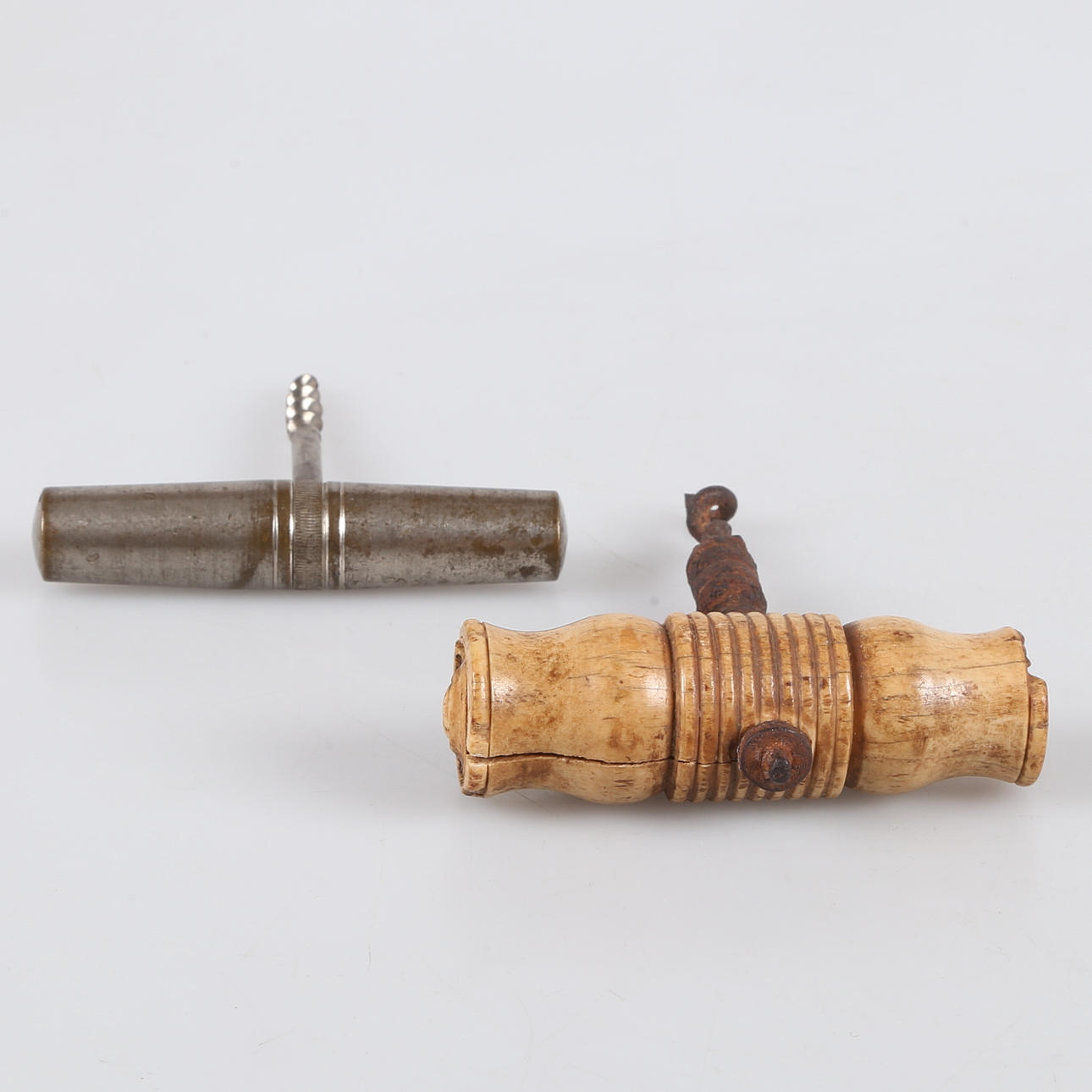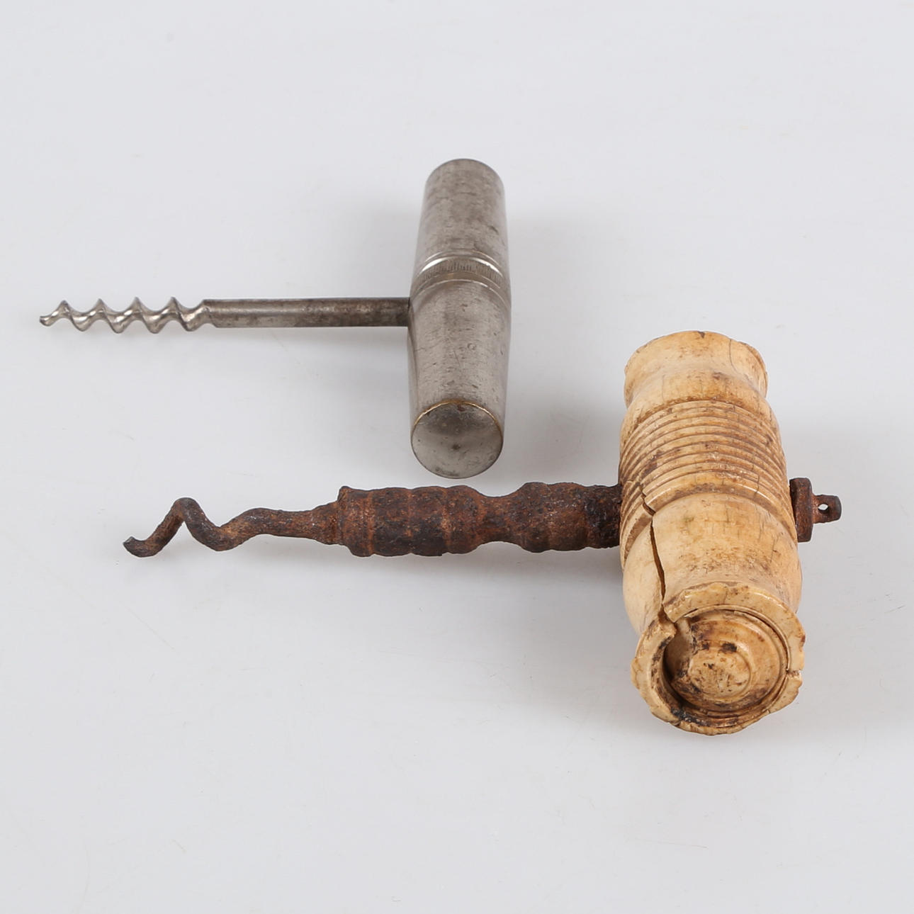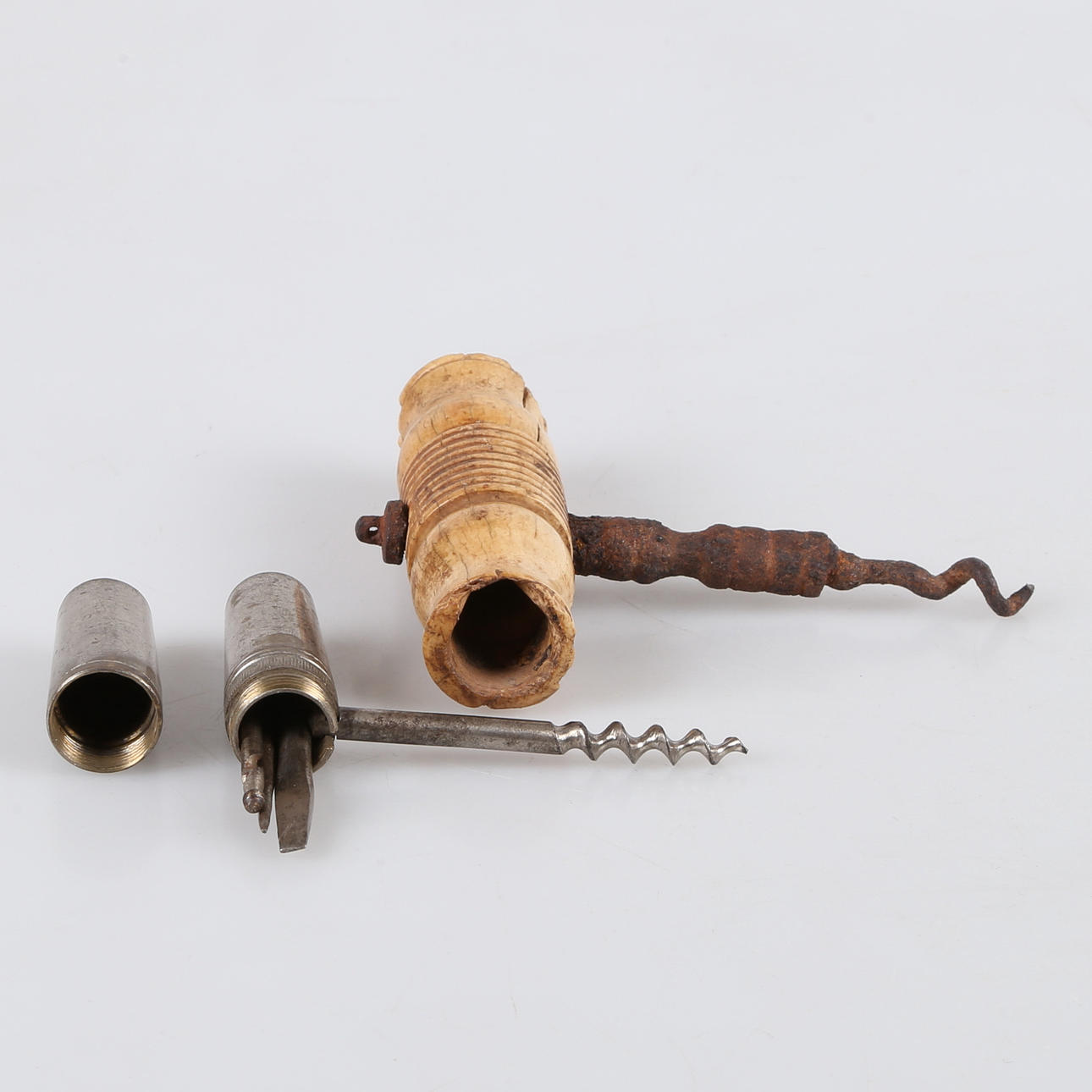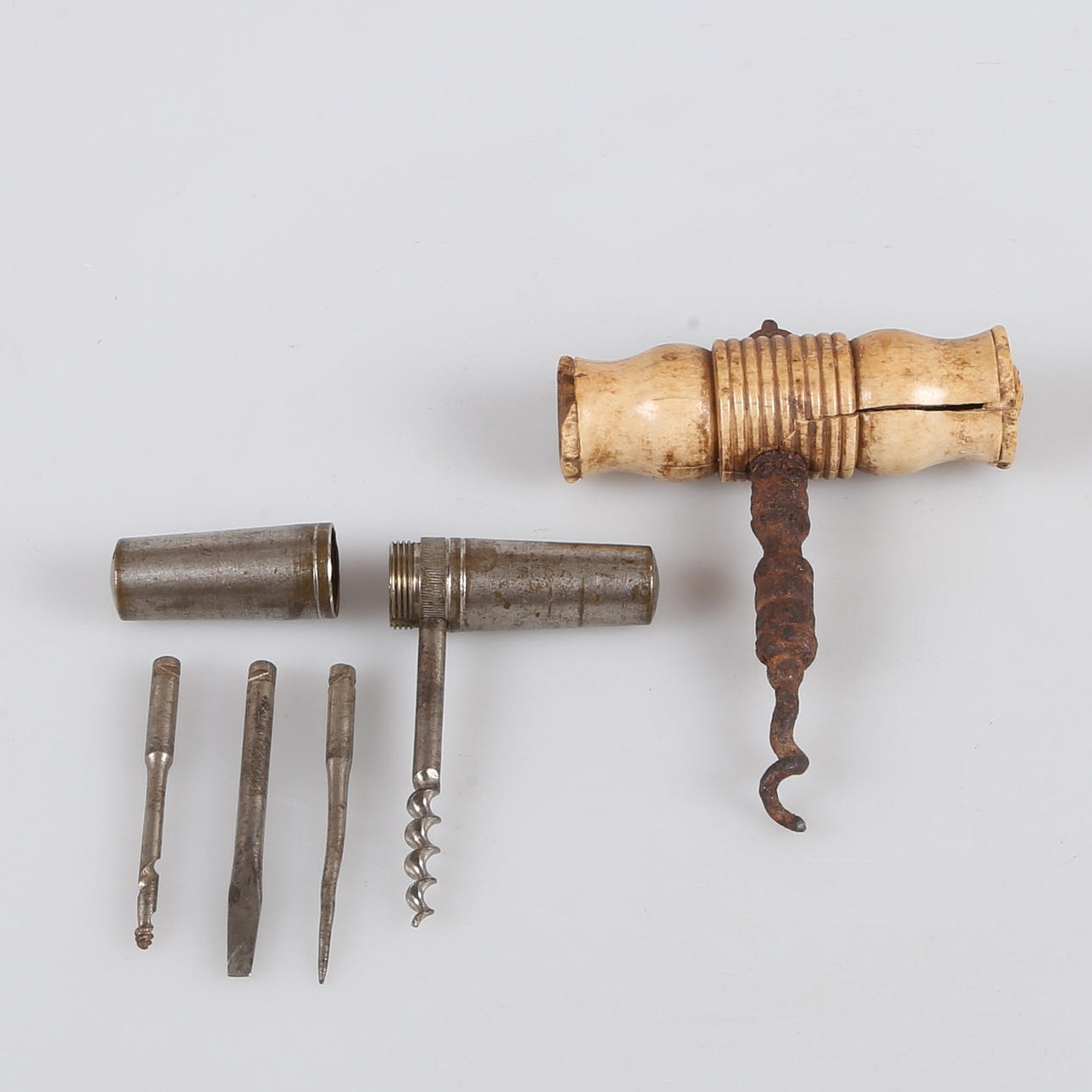 Corkscrew with handle in bone/horn, length 11.5 cm Sausage screwdriver in iron, length 8 cm with multifunction.