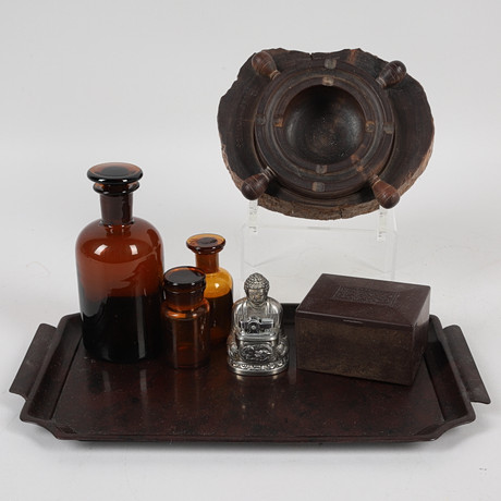 Wood, glass, box dimensions: approx. 47x30 cm.