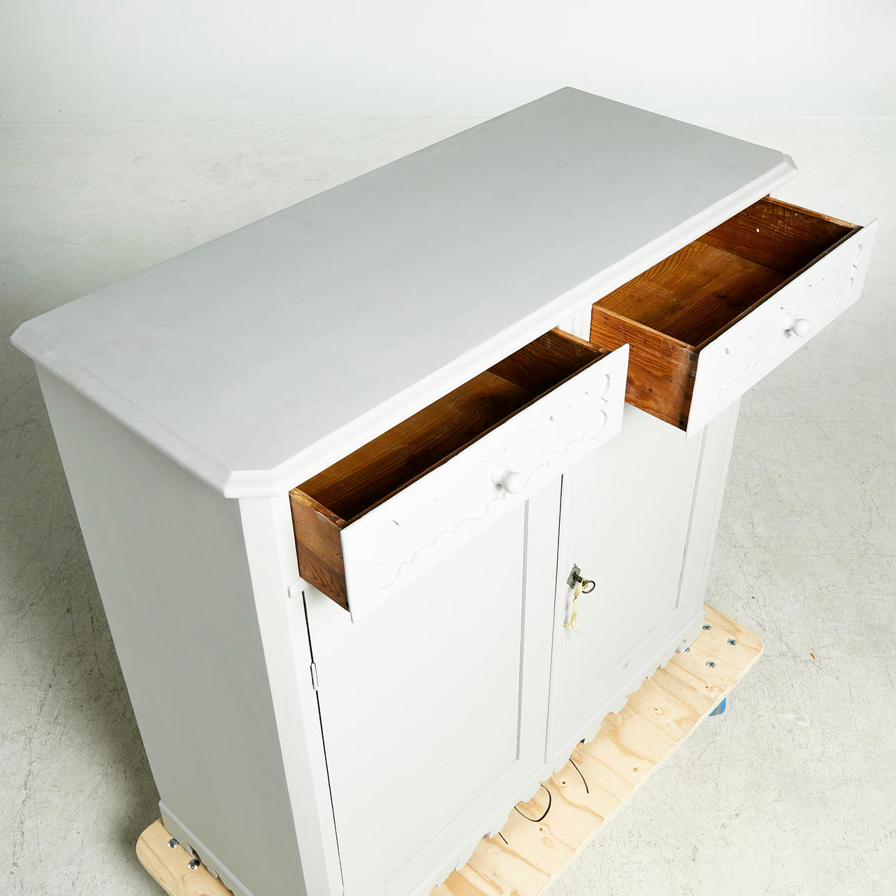 Normal wear and tear, later painted.