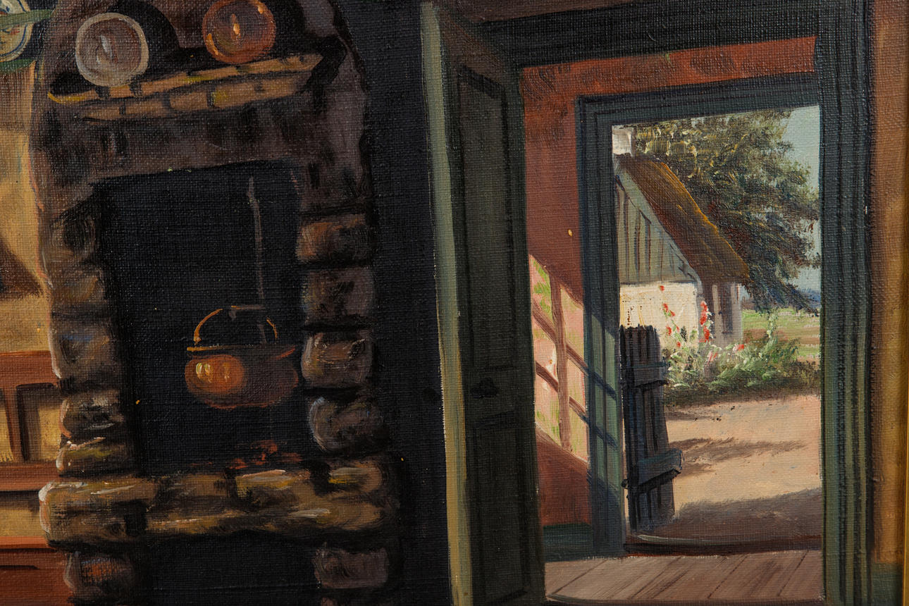 W. Behrens, Rural interior, oil on canvas, signed, approx. 56 x 65 cm., with frame approx. 70x80cm.