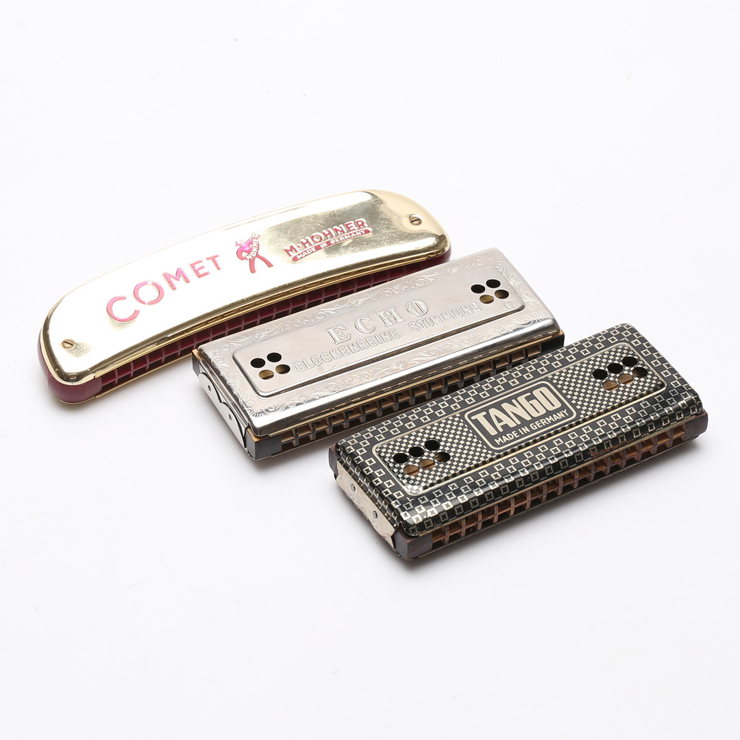 1840011. HARMONICA, 3 pcs., "Tango", "Comet" and "Echo", Hohner, 1900s.