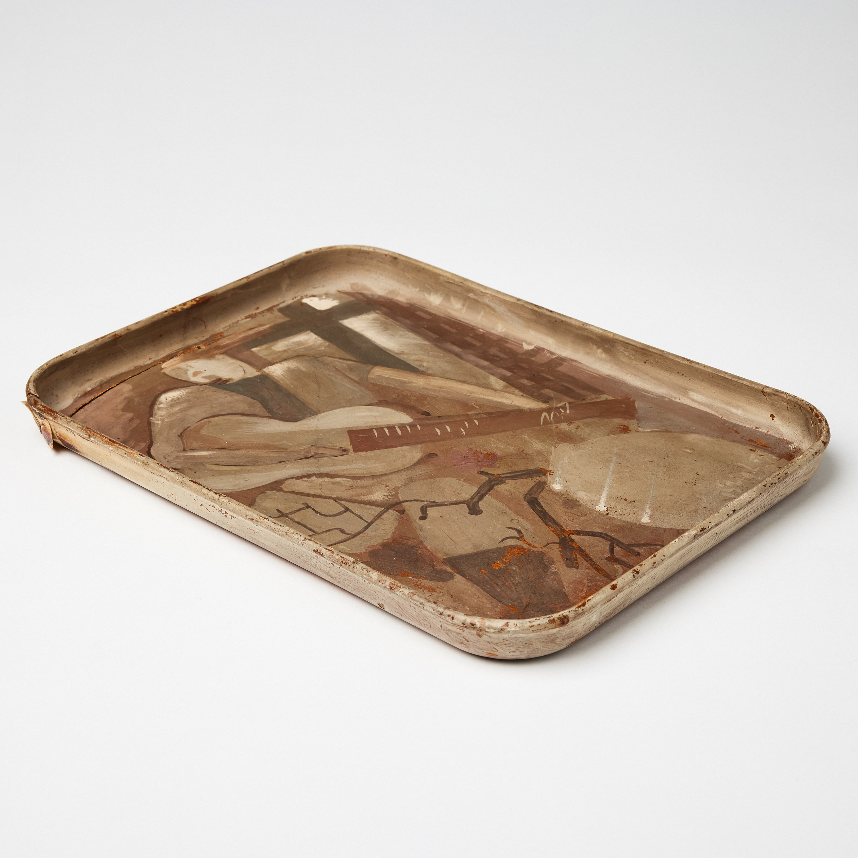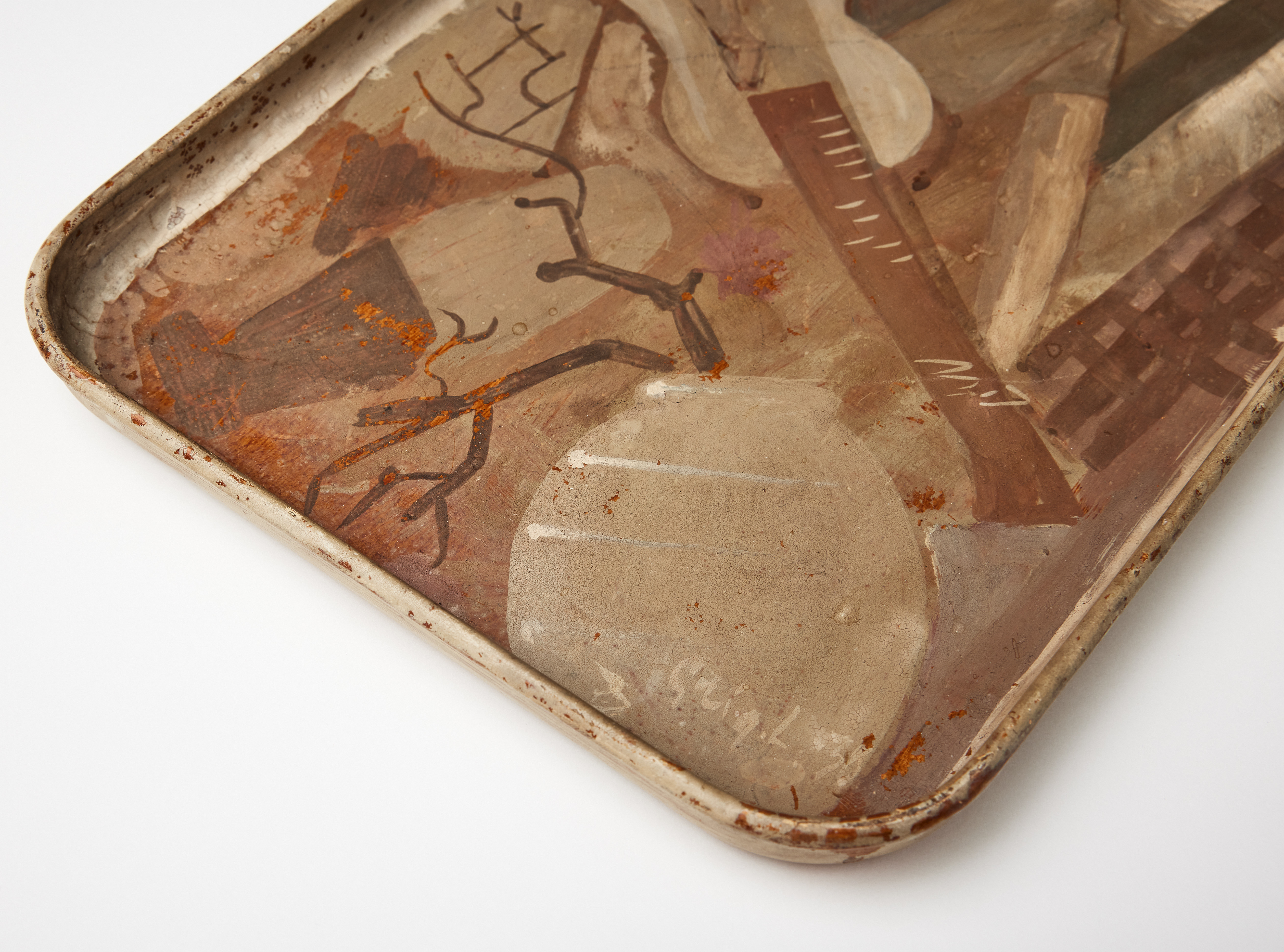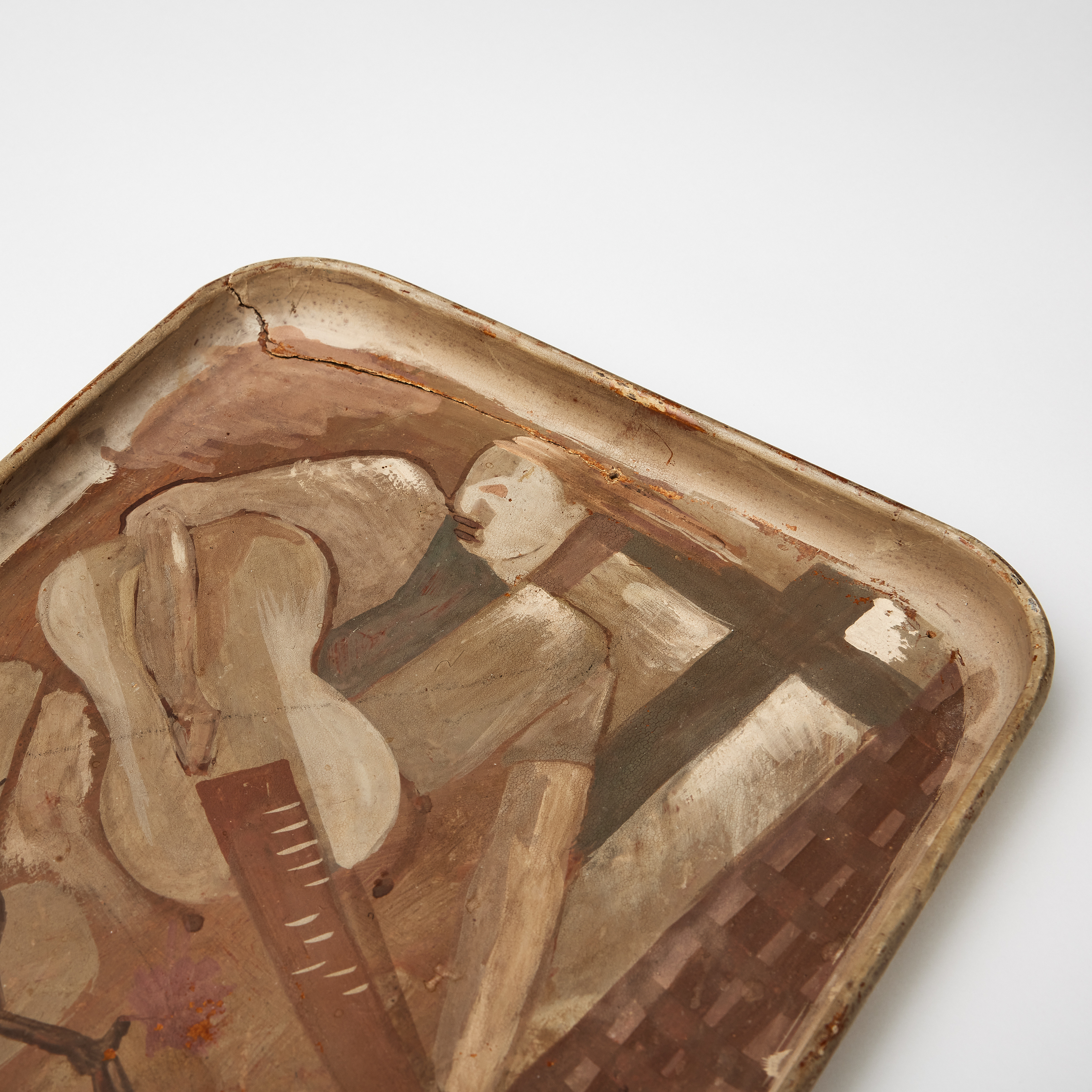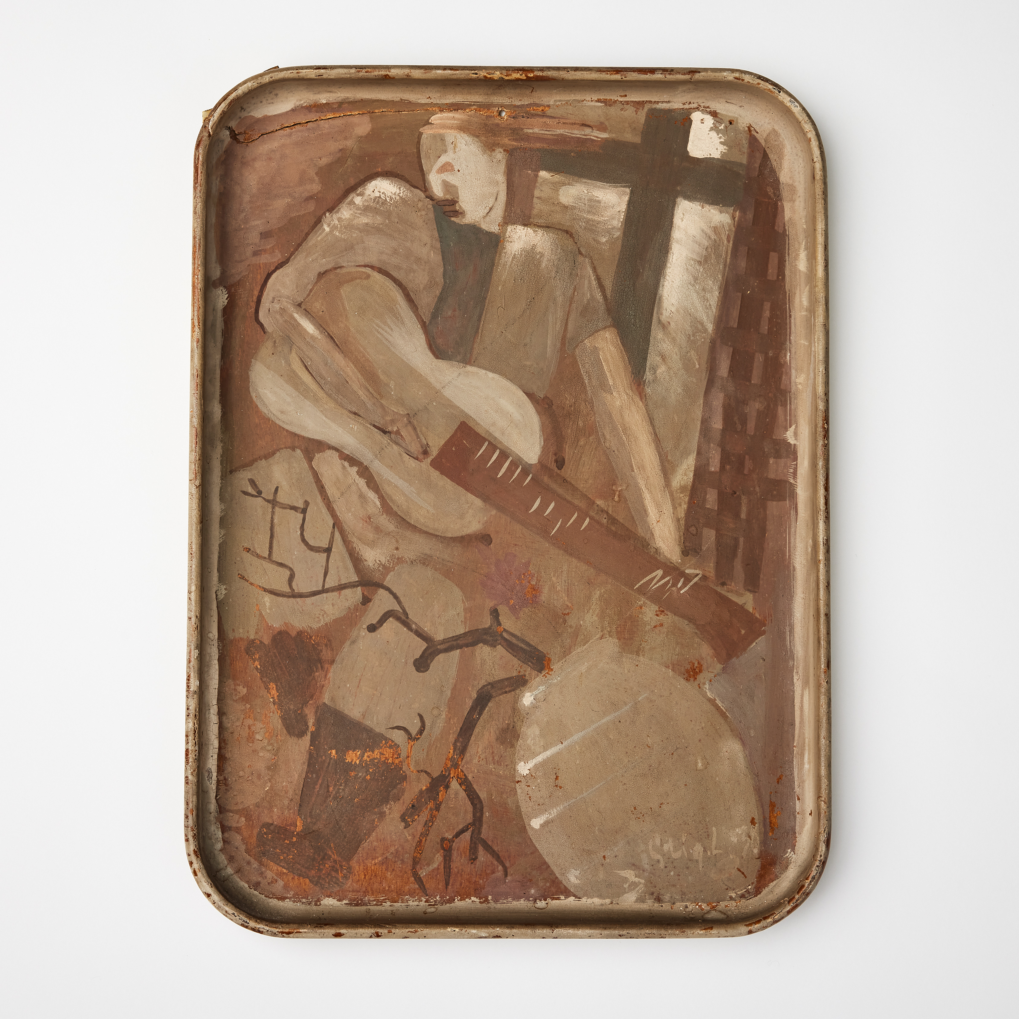 97. 1842128. STIG LINDBERG. A tray, 1938, painted decoration with a guitar playing figure.