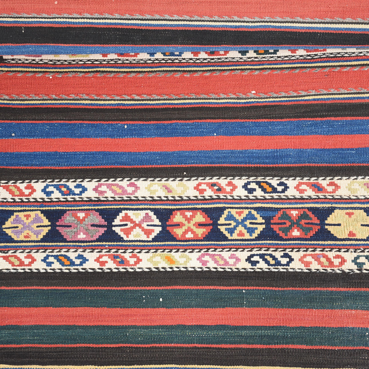 Wool and cotton, tightly folded, approx. 410 x 157 cm.