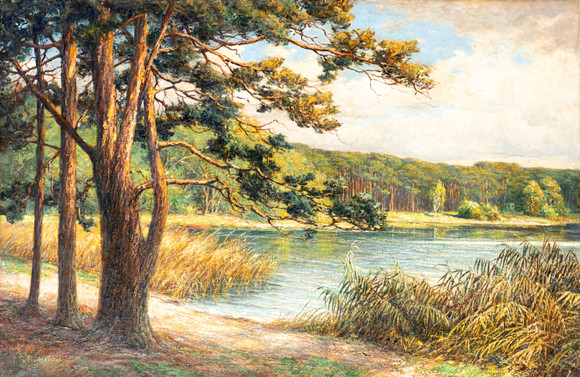 1854167. JONATHAN BAIRD. Pine trees by the lake, etching, signed.