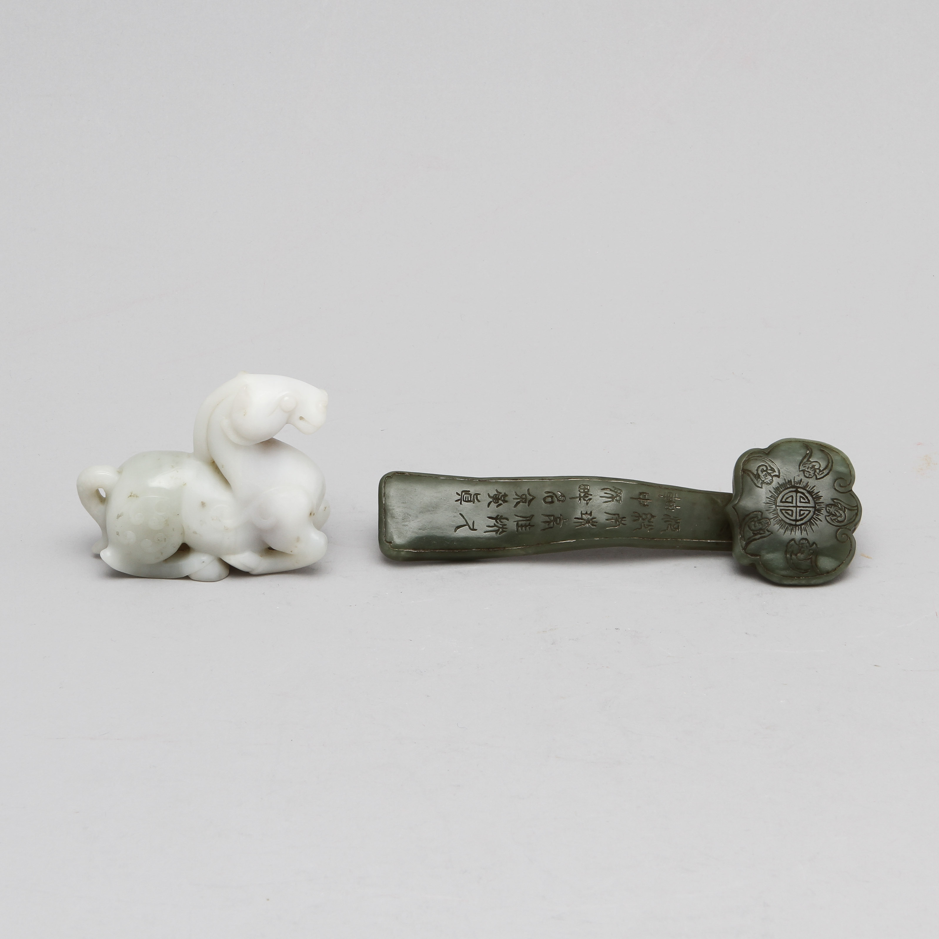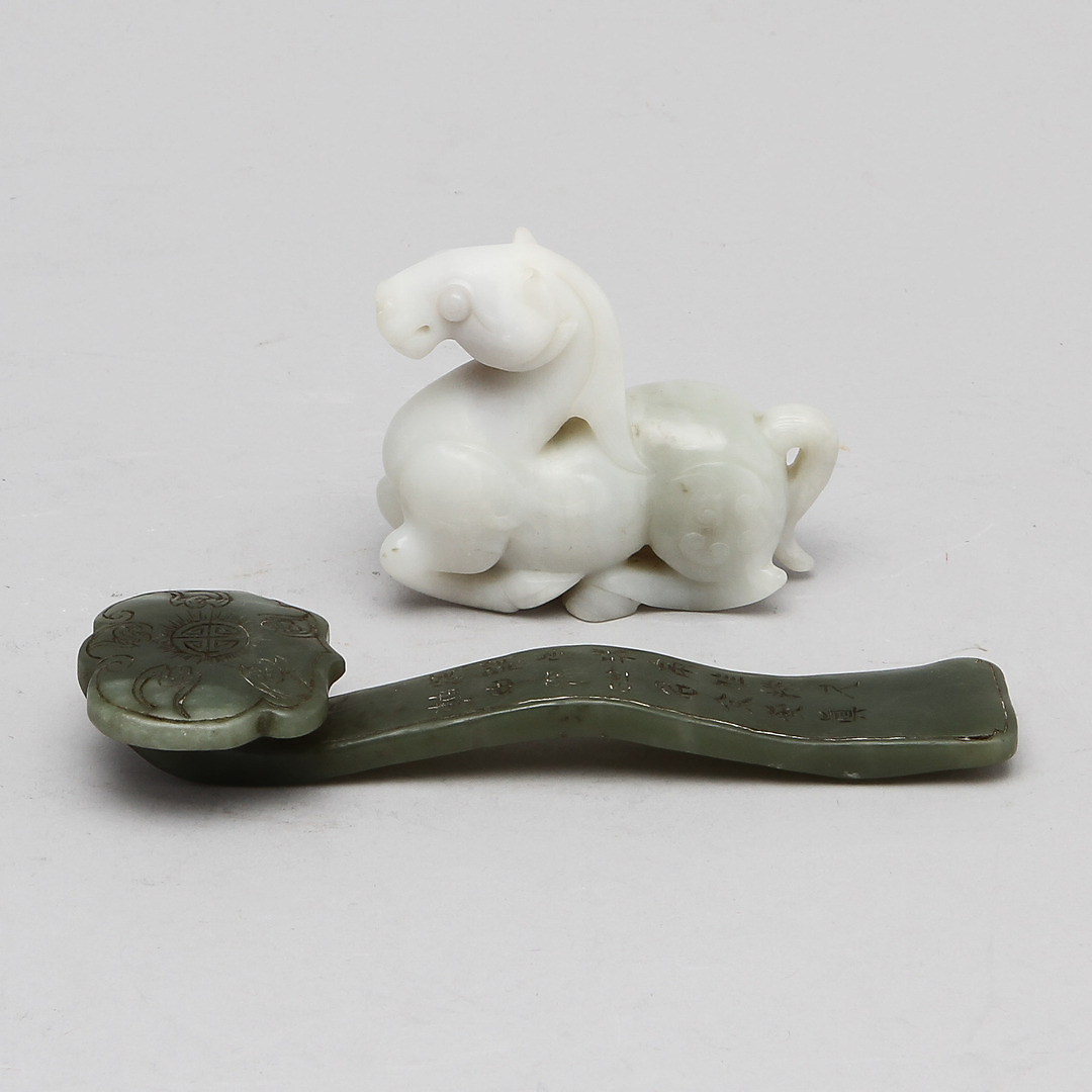 186059. FIGURE and OBJECTS, 2 pieces, stone, China.