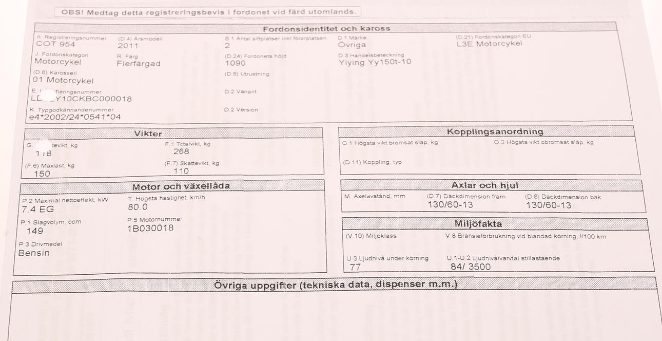 LIGHT MOTORCYCLE, Yiying Yy 150t-10.