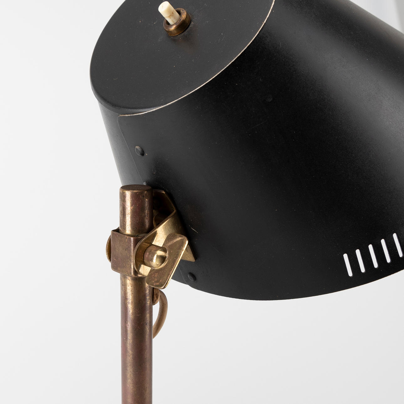 Brass and black painted metal, adjustable shade. Height approx. 40 cm.