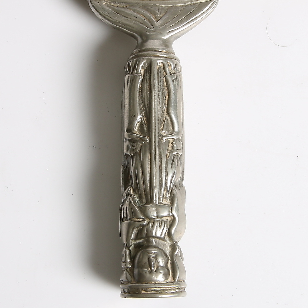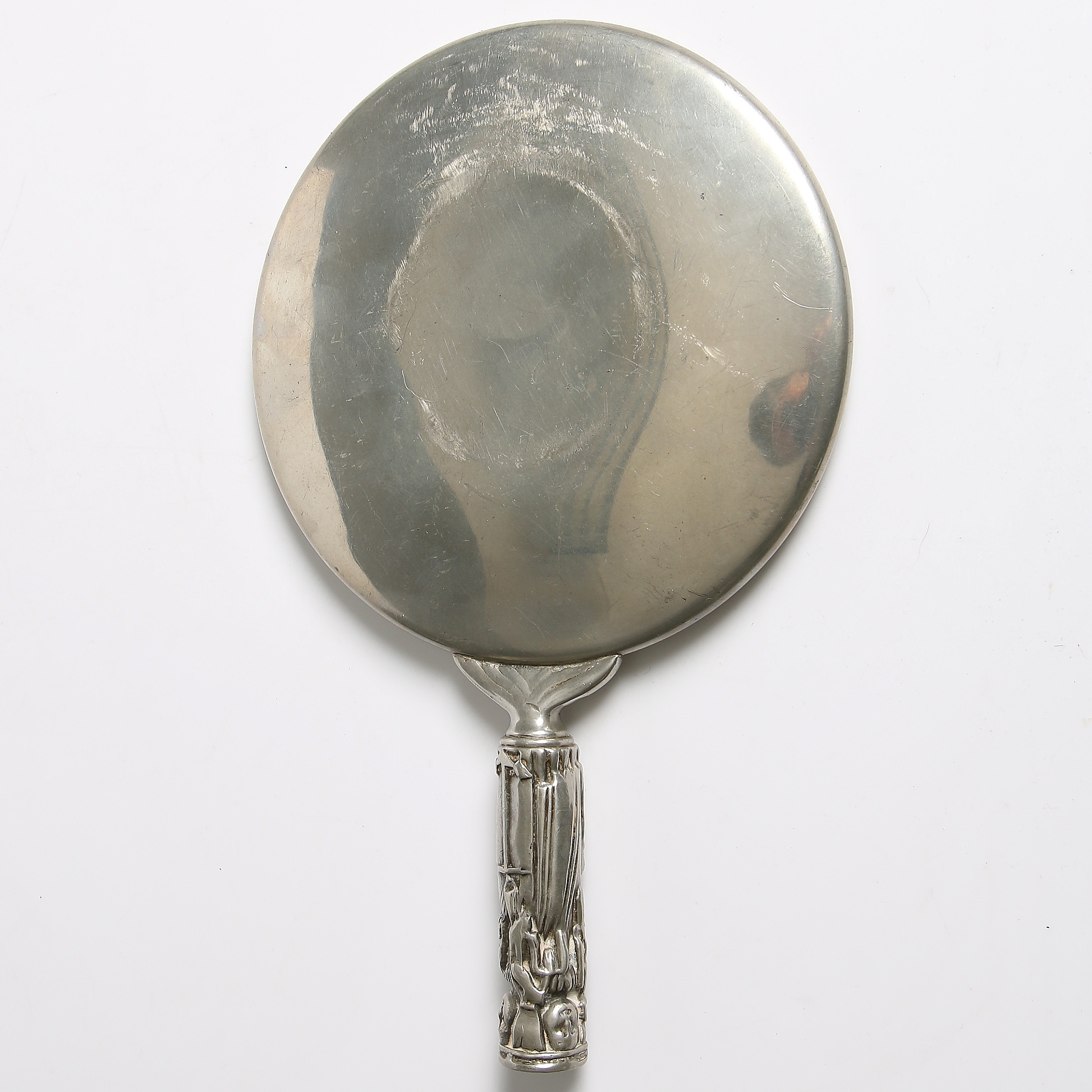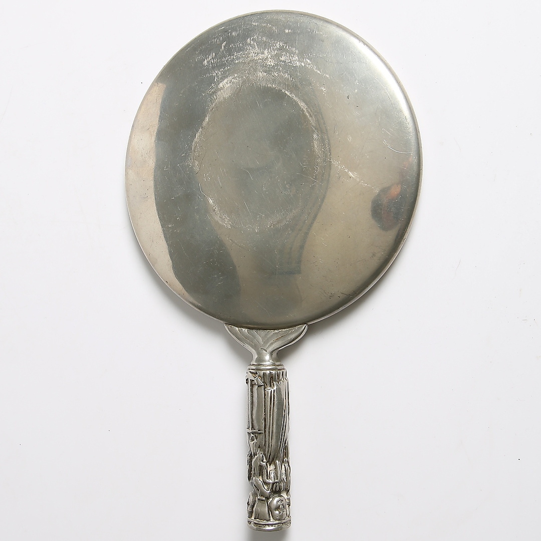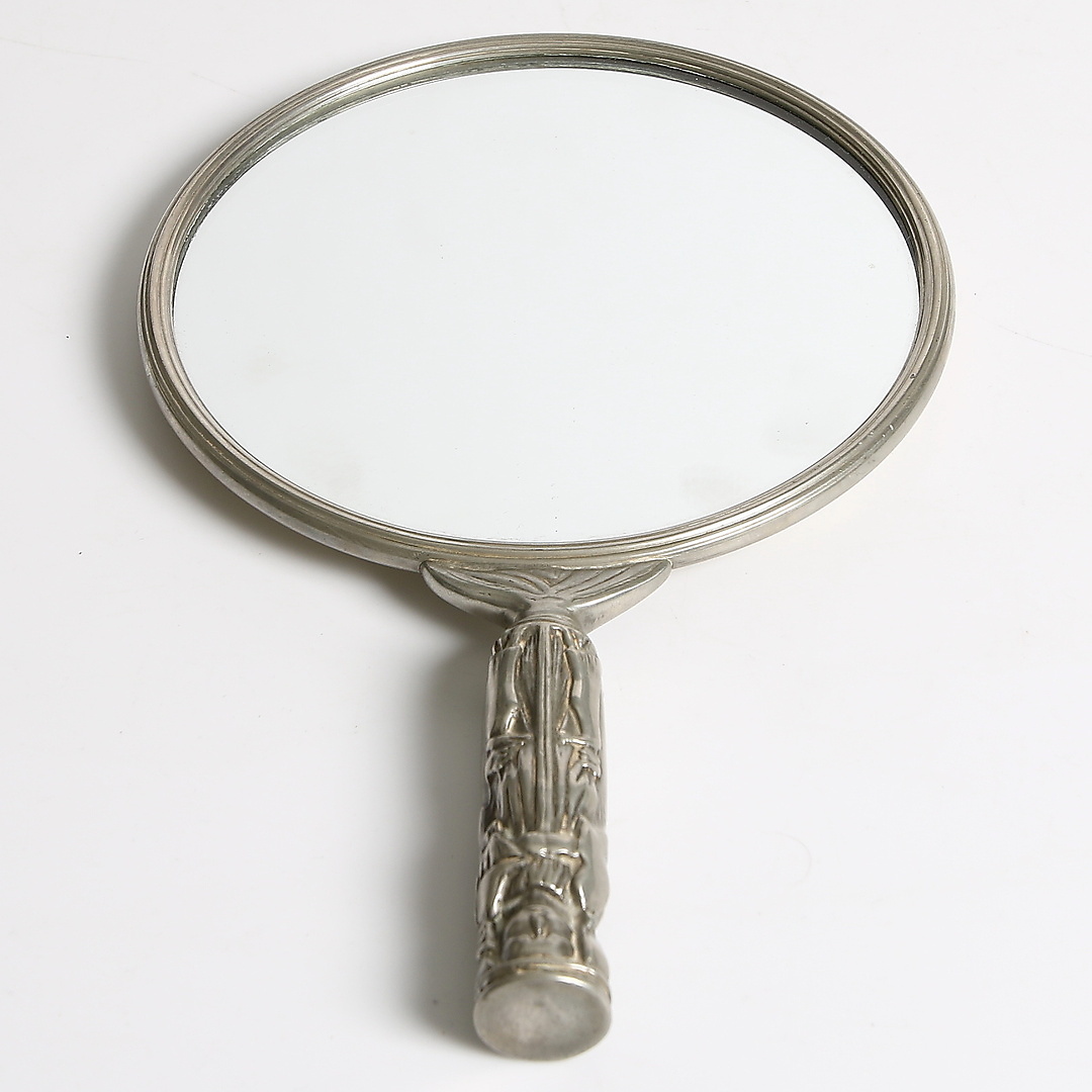 186715. HAND MIRROR, pewter, early 20th century.