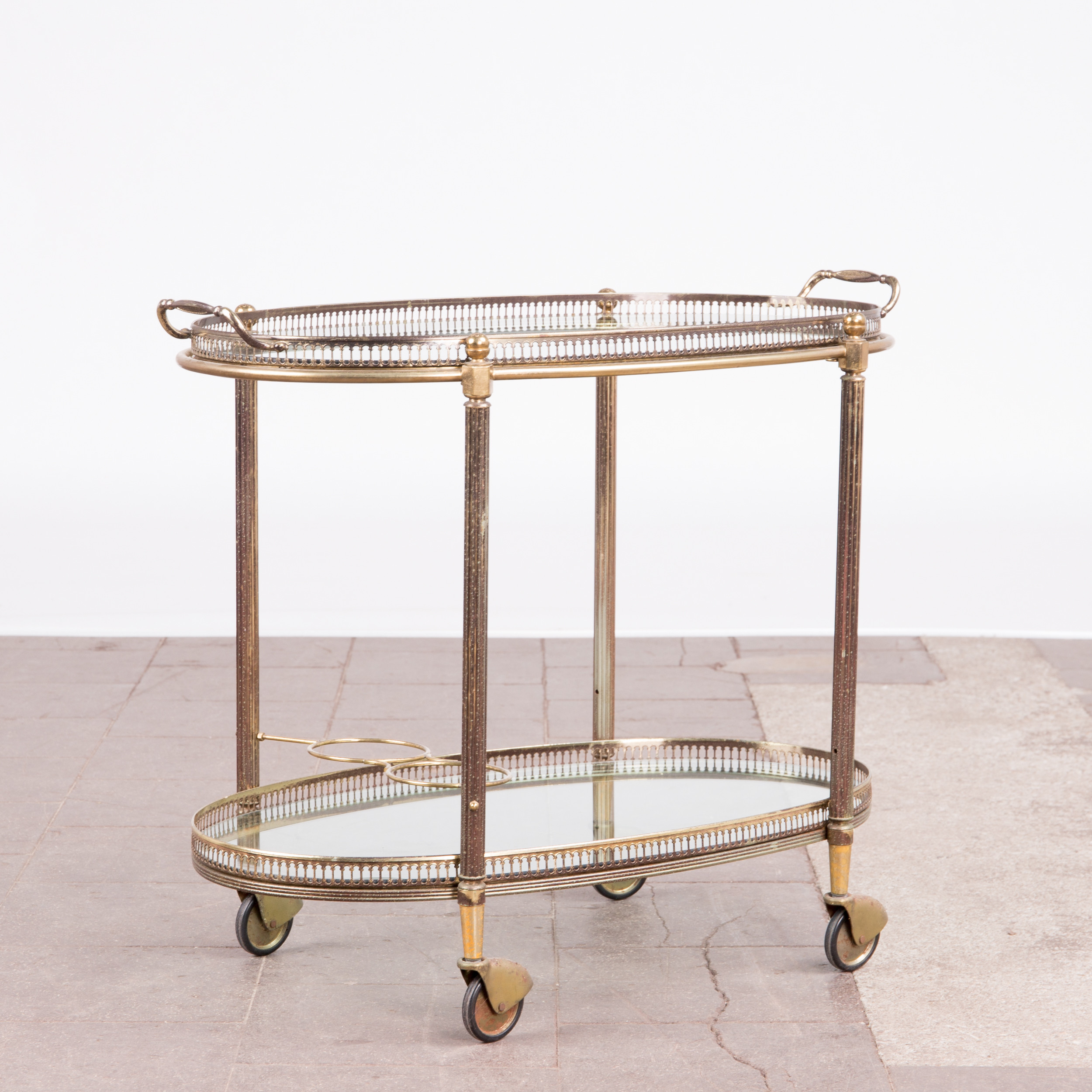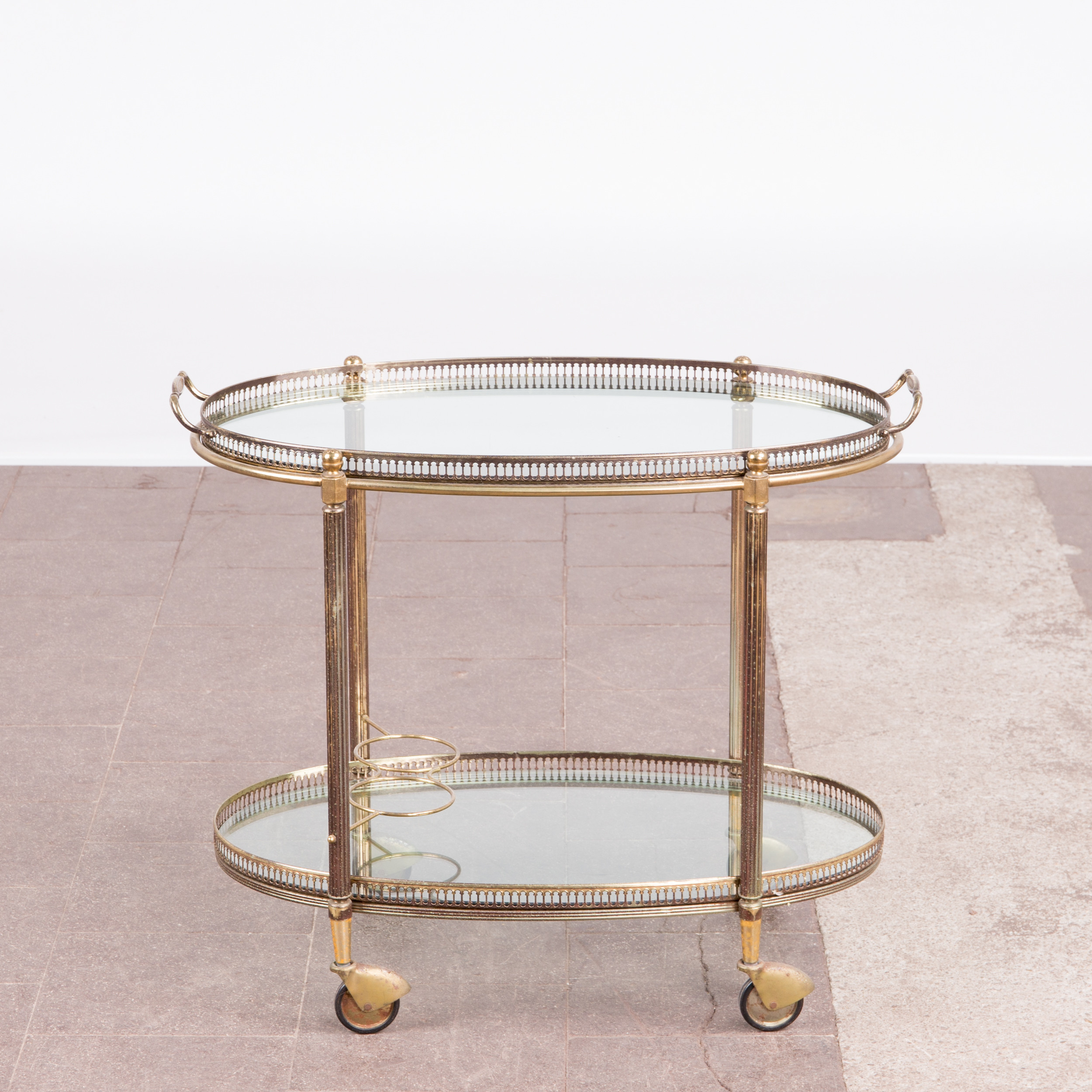 1877017. Bar trolley / serving trolley, brass, glass.