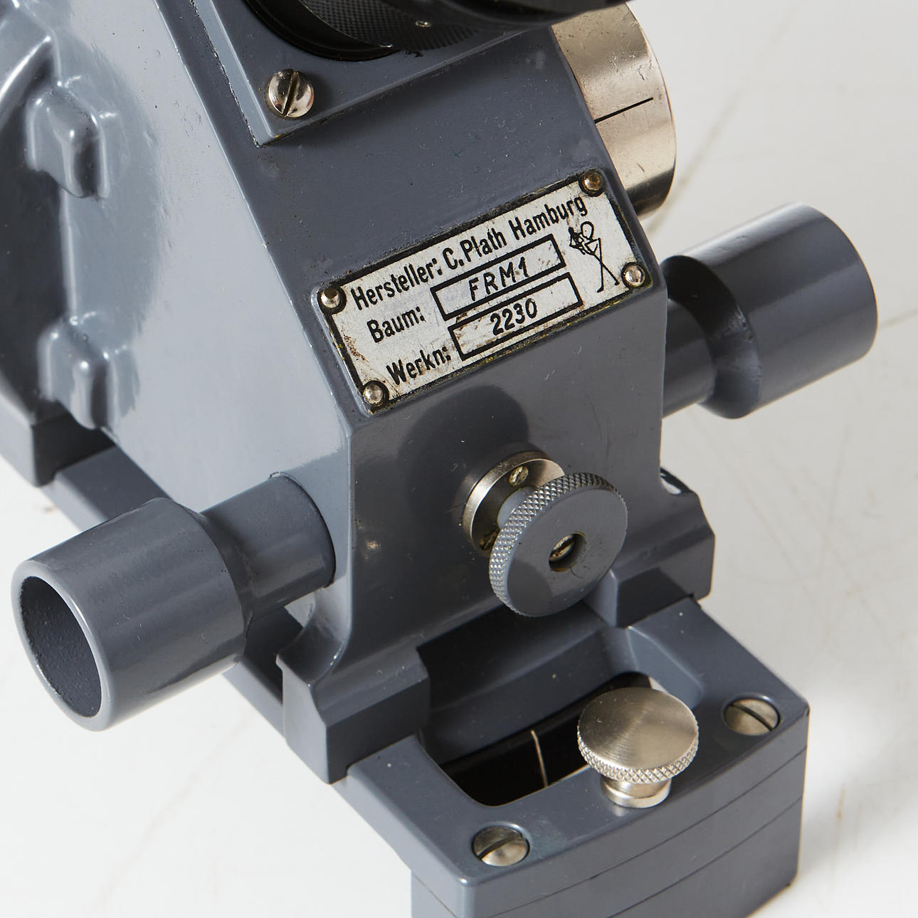 Grey-lacquered brass, plate marked C. Plath Hamburg and numbered 2230, length approx. 30 cm, in box wool marked AGA, size of box wool 19x36x15 cm.