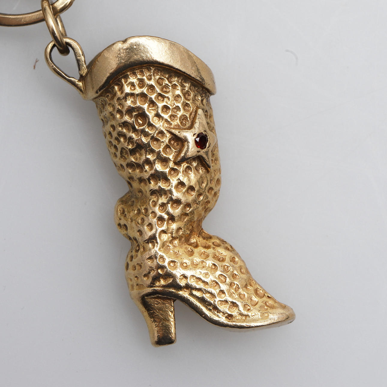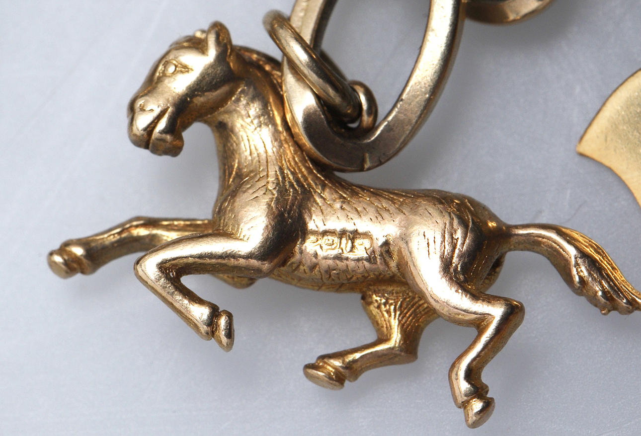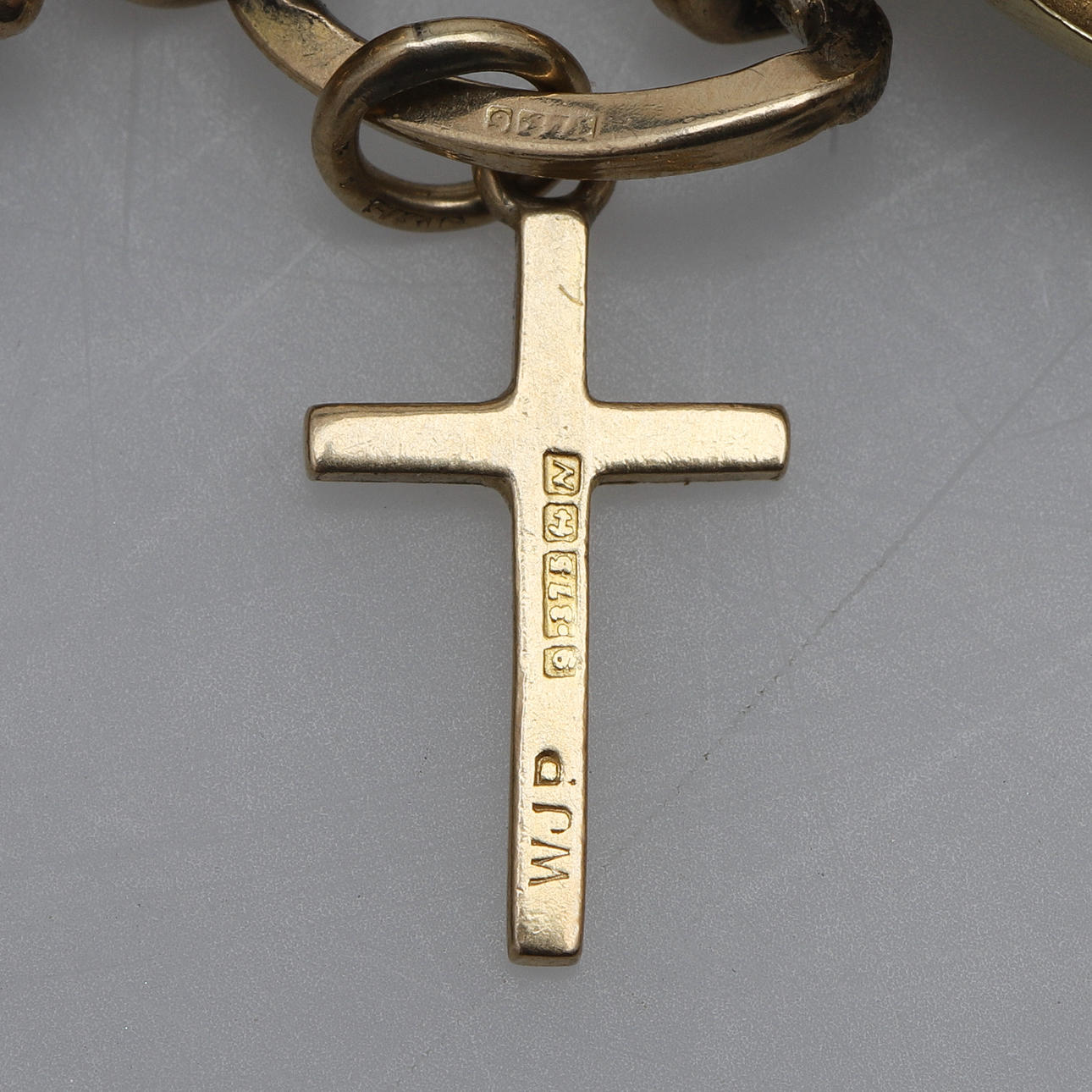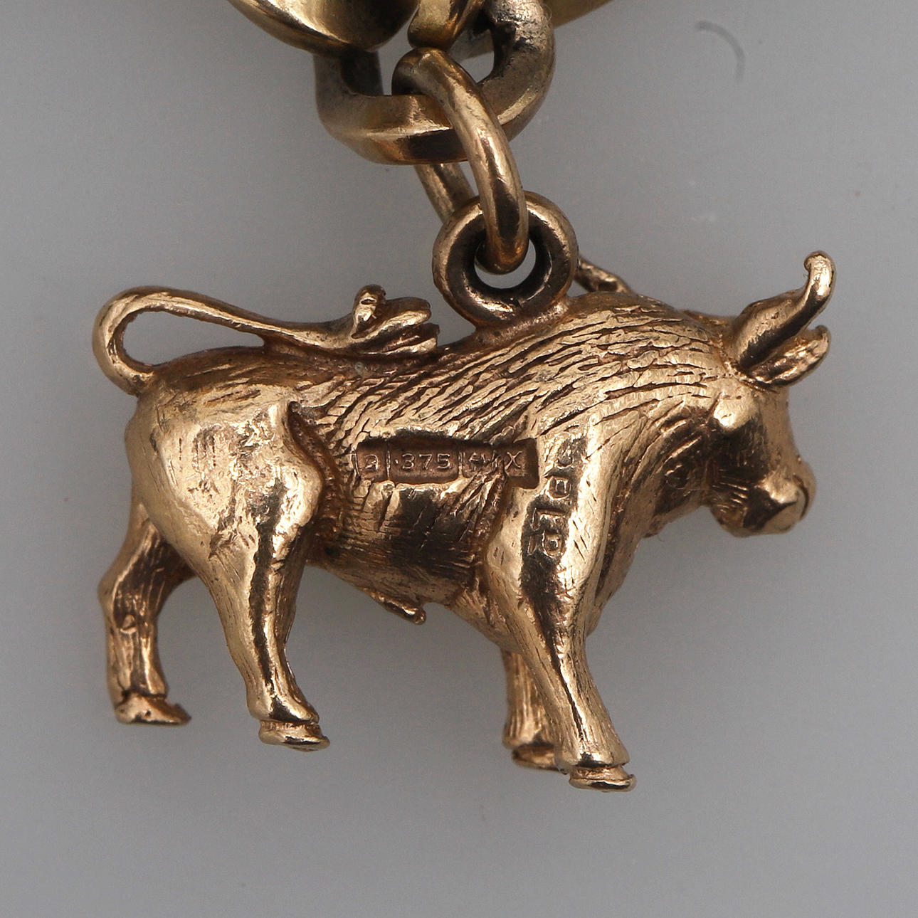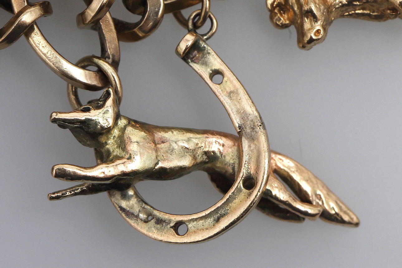 the 9 carat twisted open curb link bracelet with bolt ring clasp, hung a variety of various hallmarked nine carat and charms,